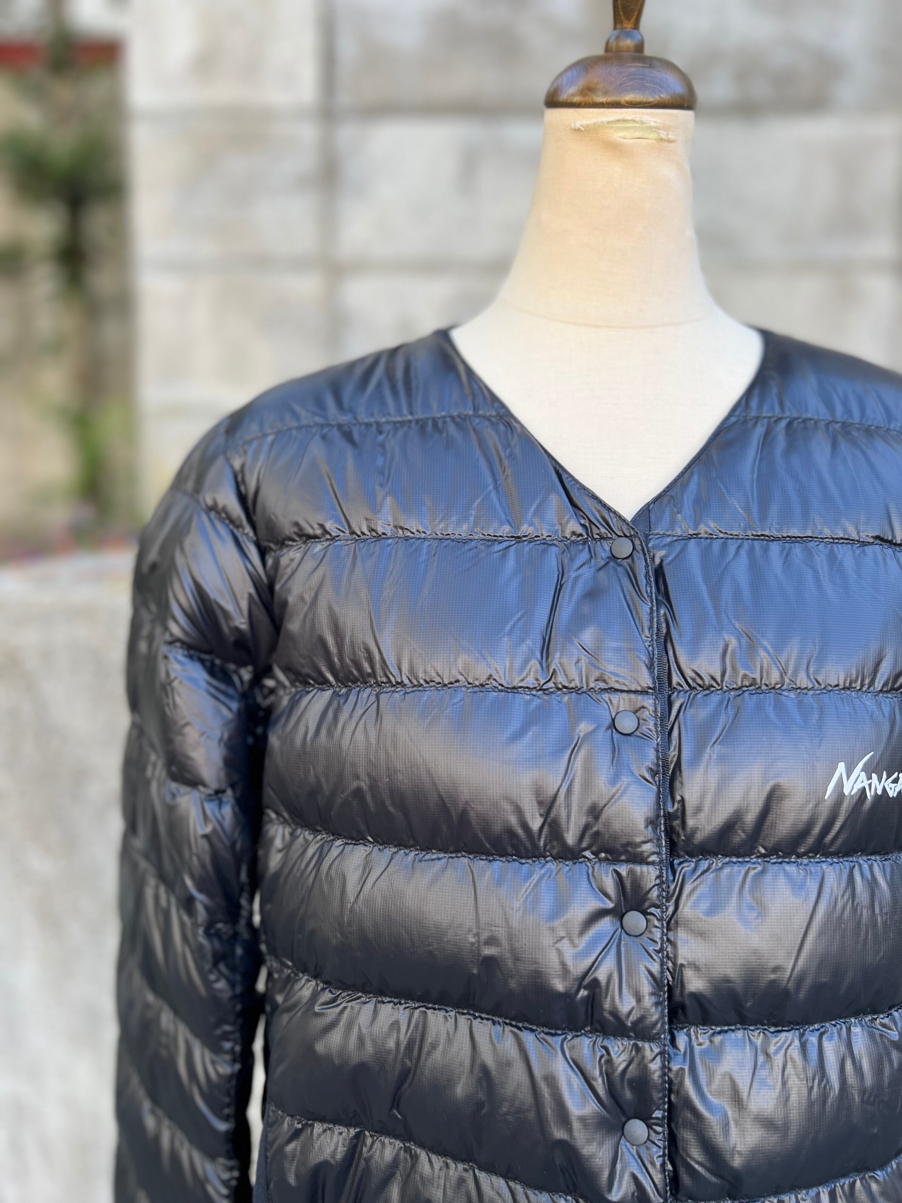 女性の体型、シルエットを考慮してデザインした軽量ダウンカーディガン