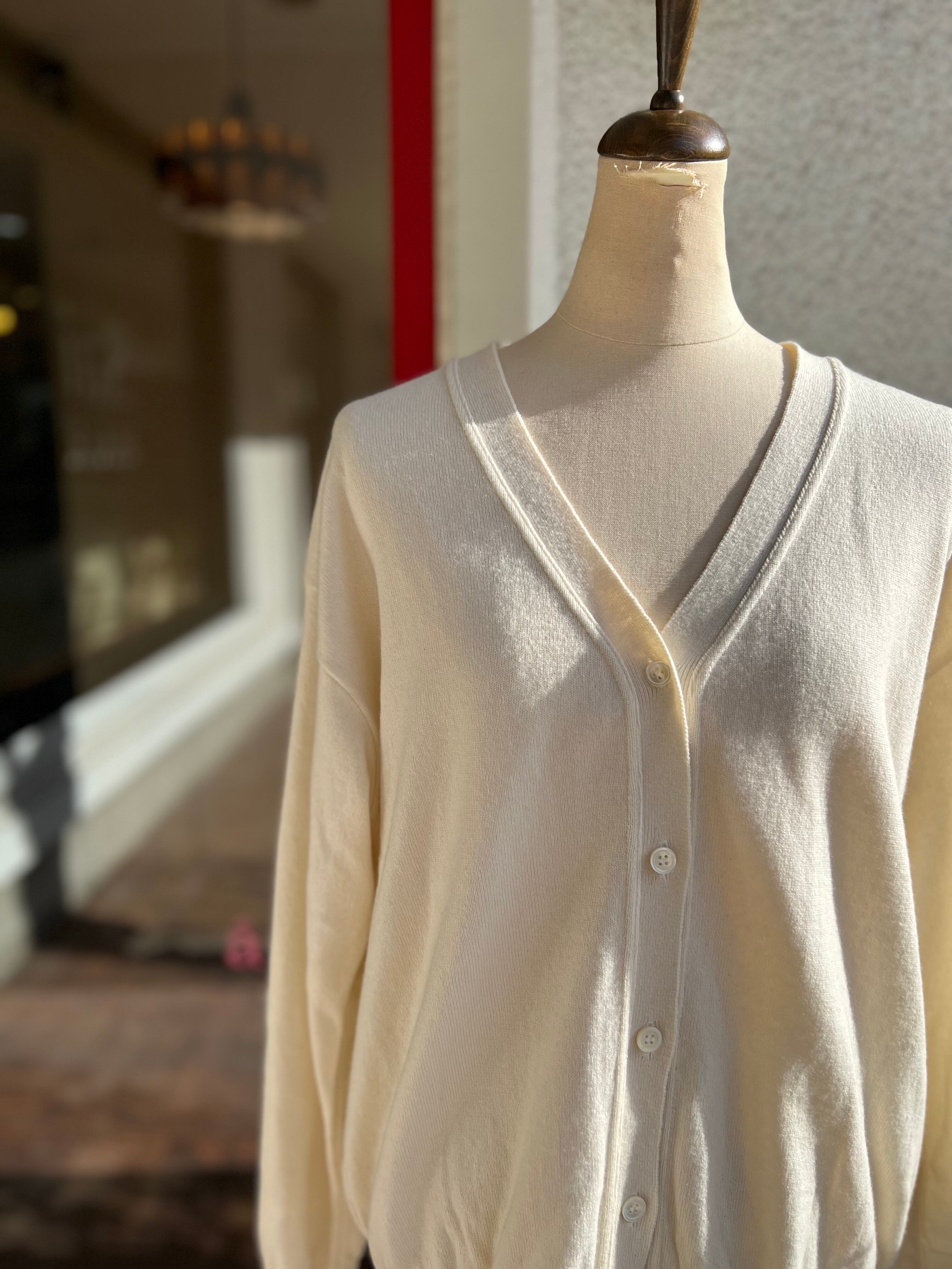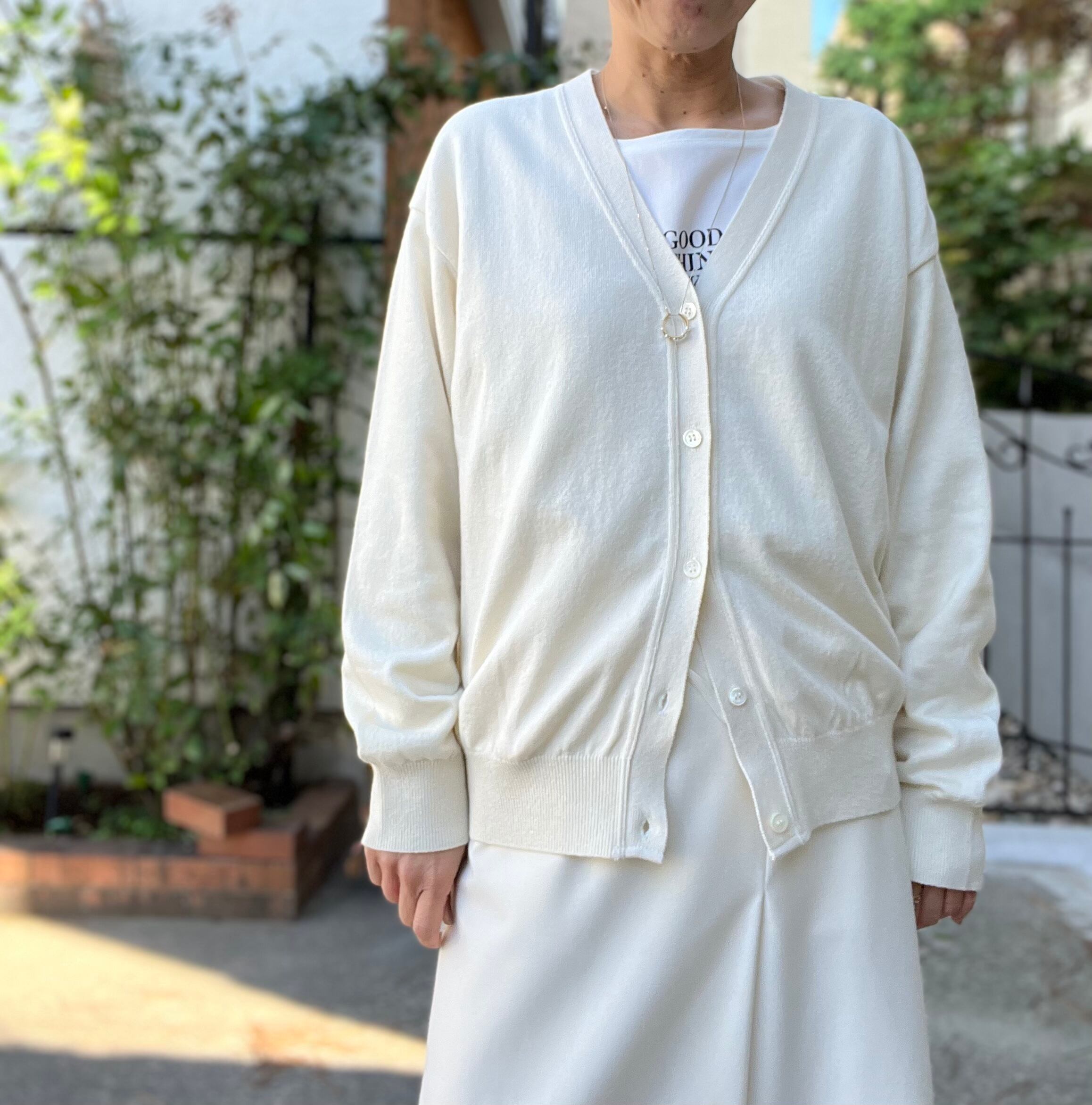 スッキリとしたフォルムのV襟カーディガン