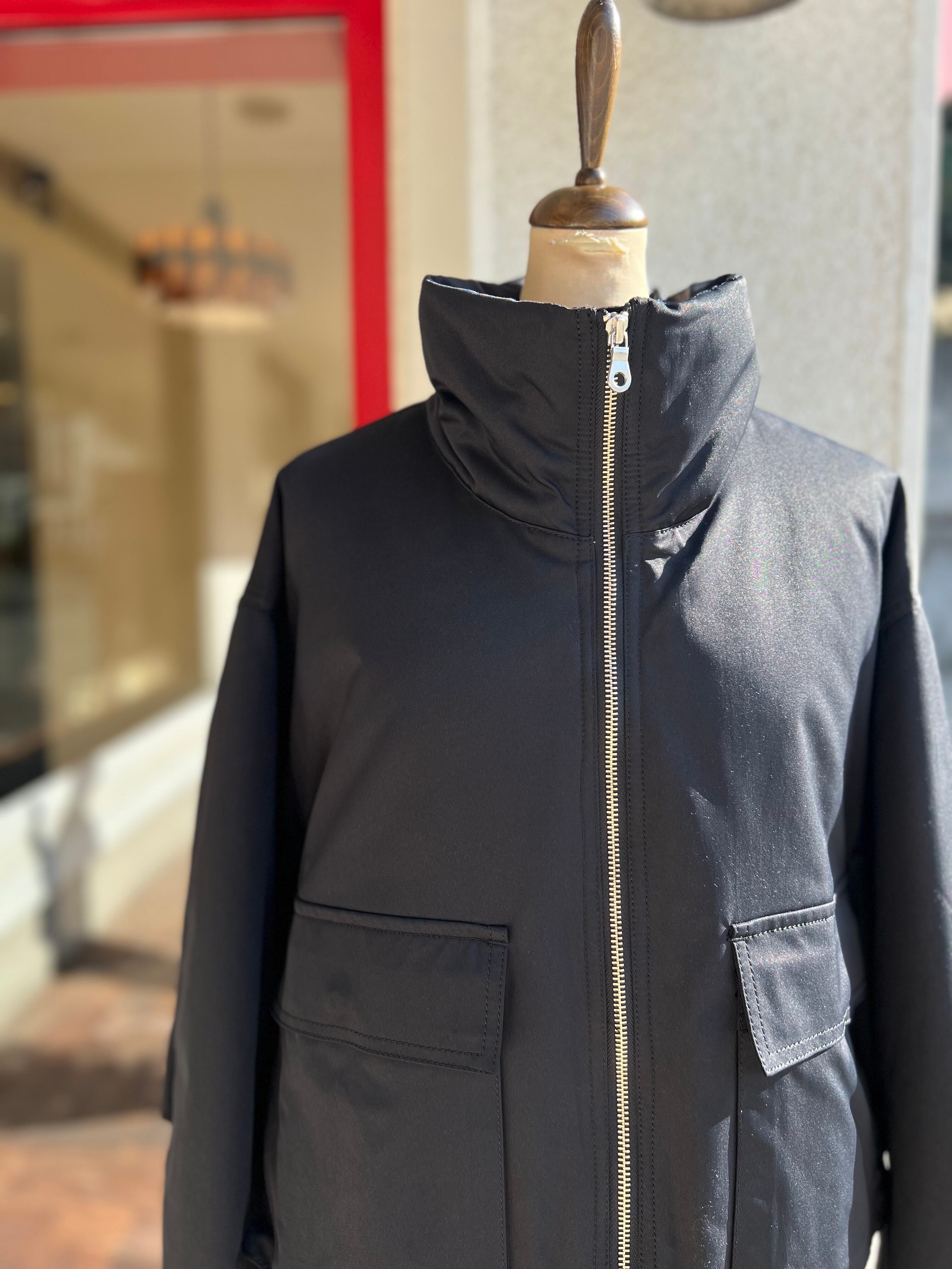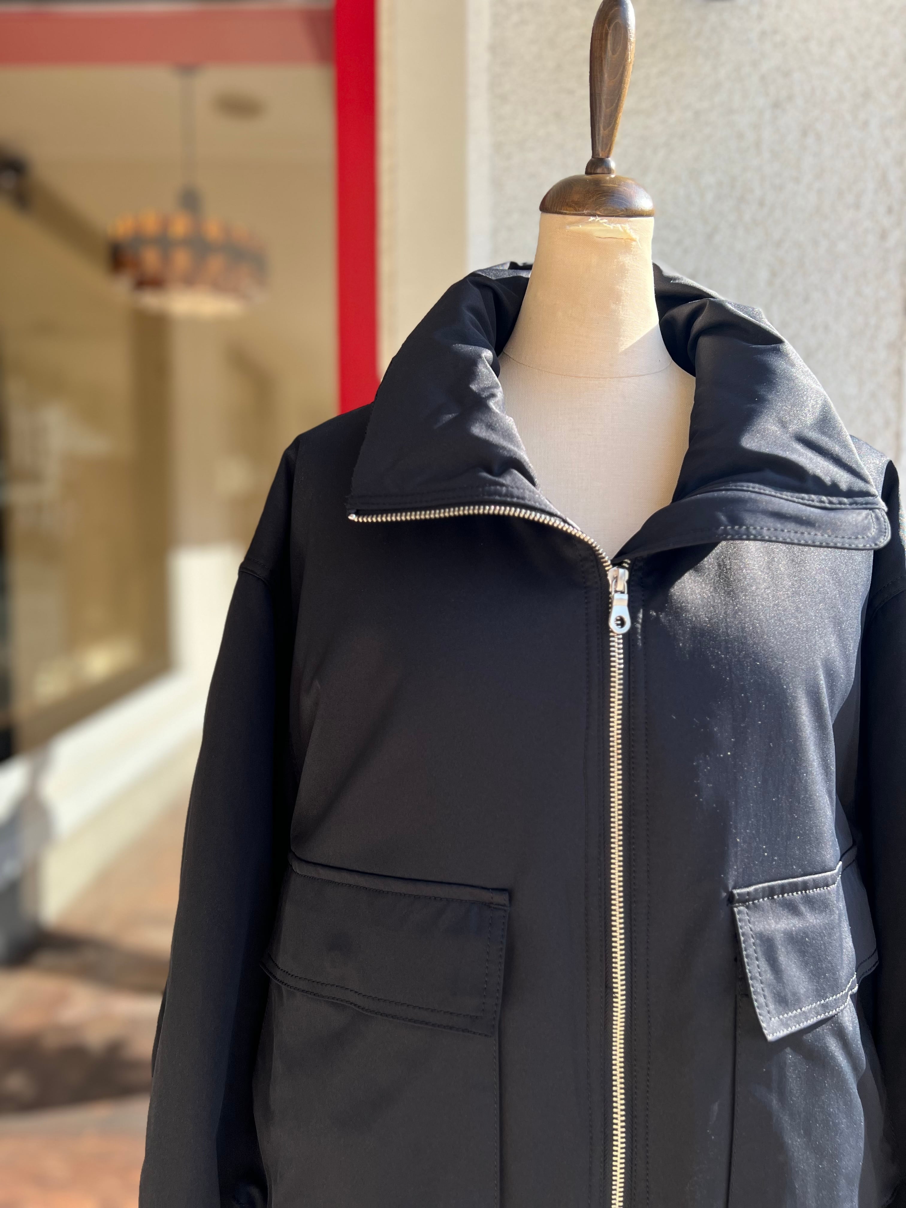 大型ポケットのはもちろんサイドにハンドウォーマーも配し