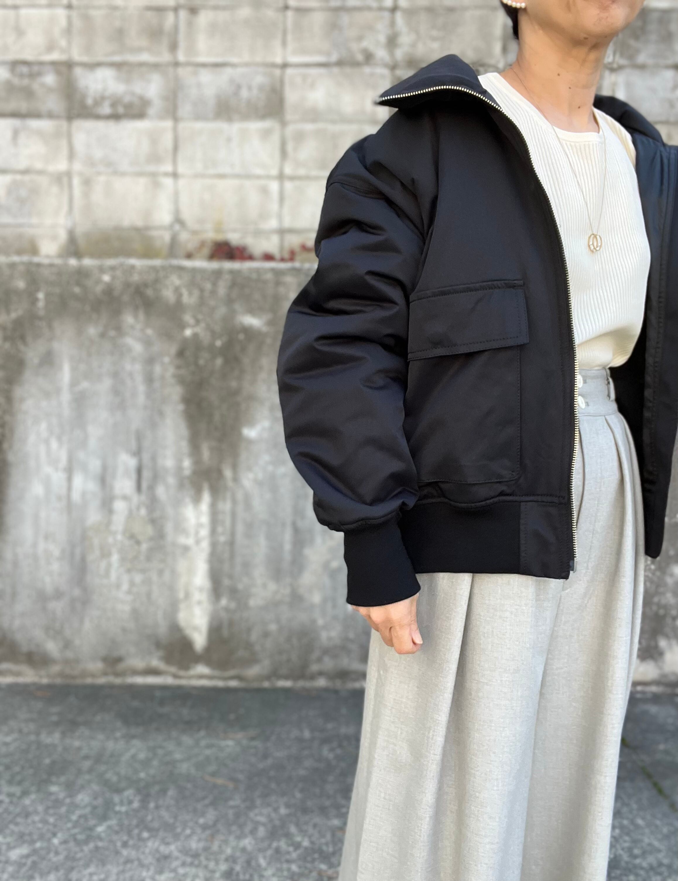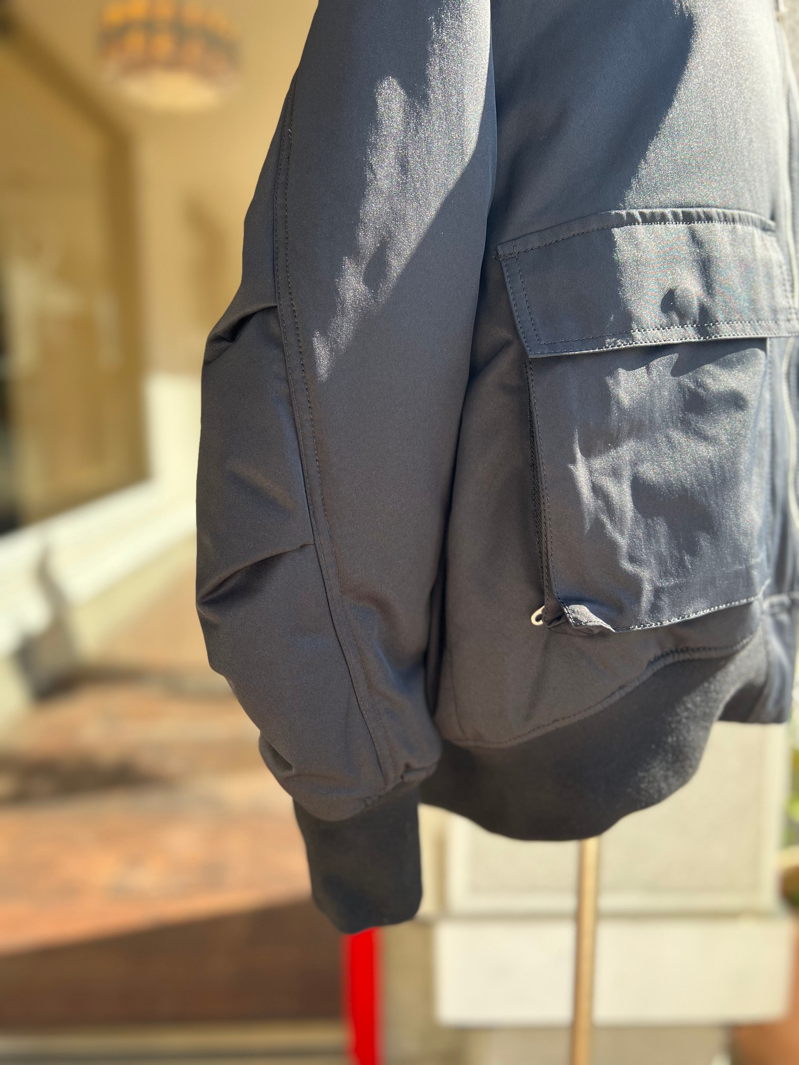 往年のフライトジャケットをベースに表地を柔らかく適度なハリを持つポリエステルツイルを使用しハードさを抑えたジャケッ