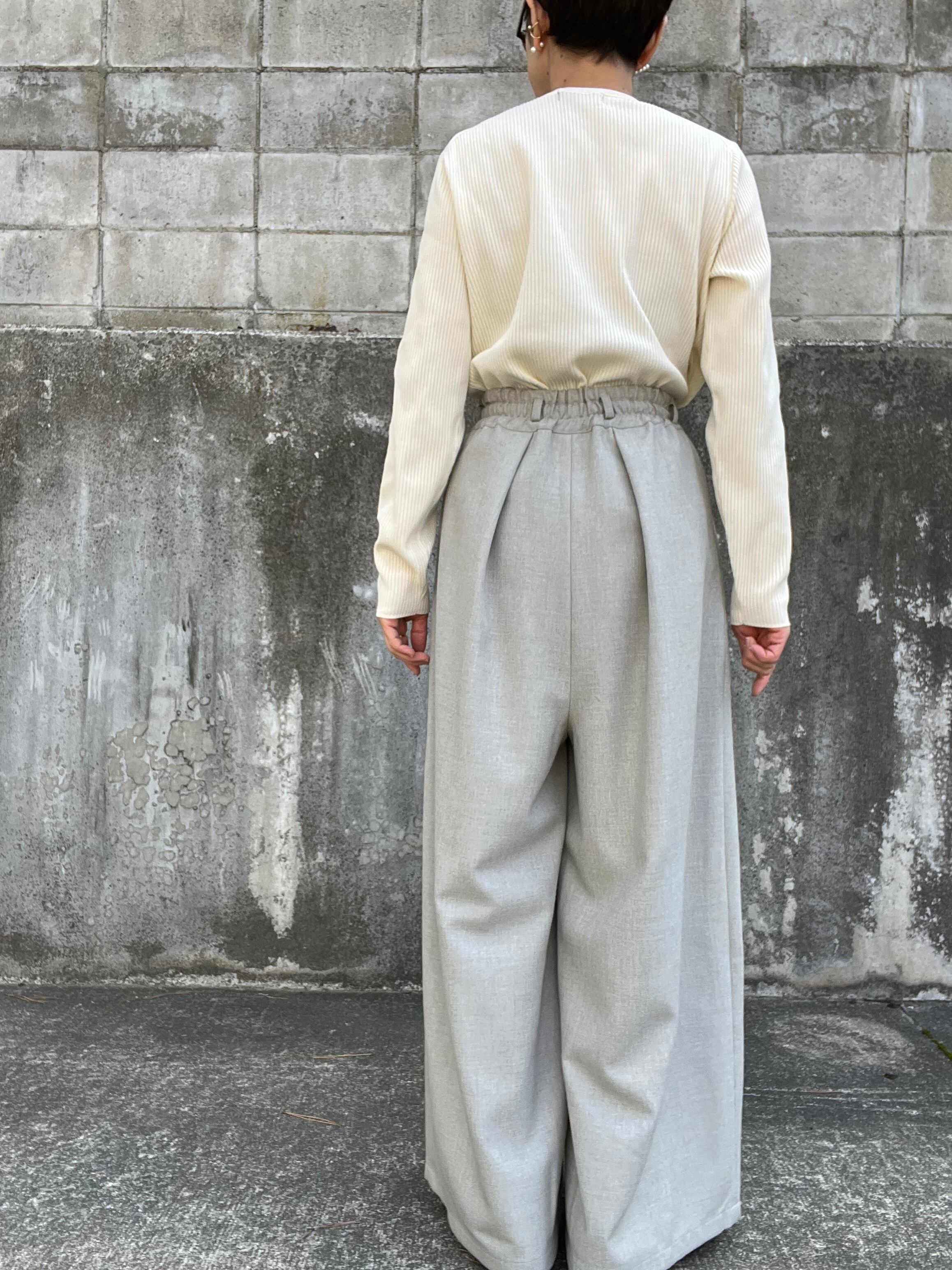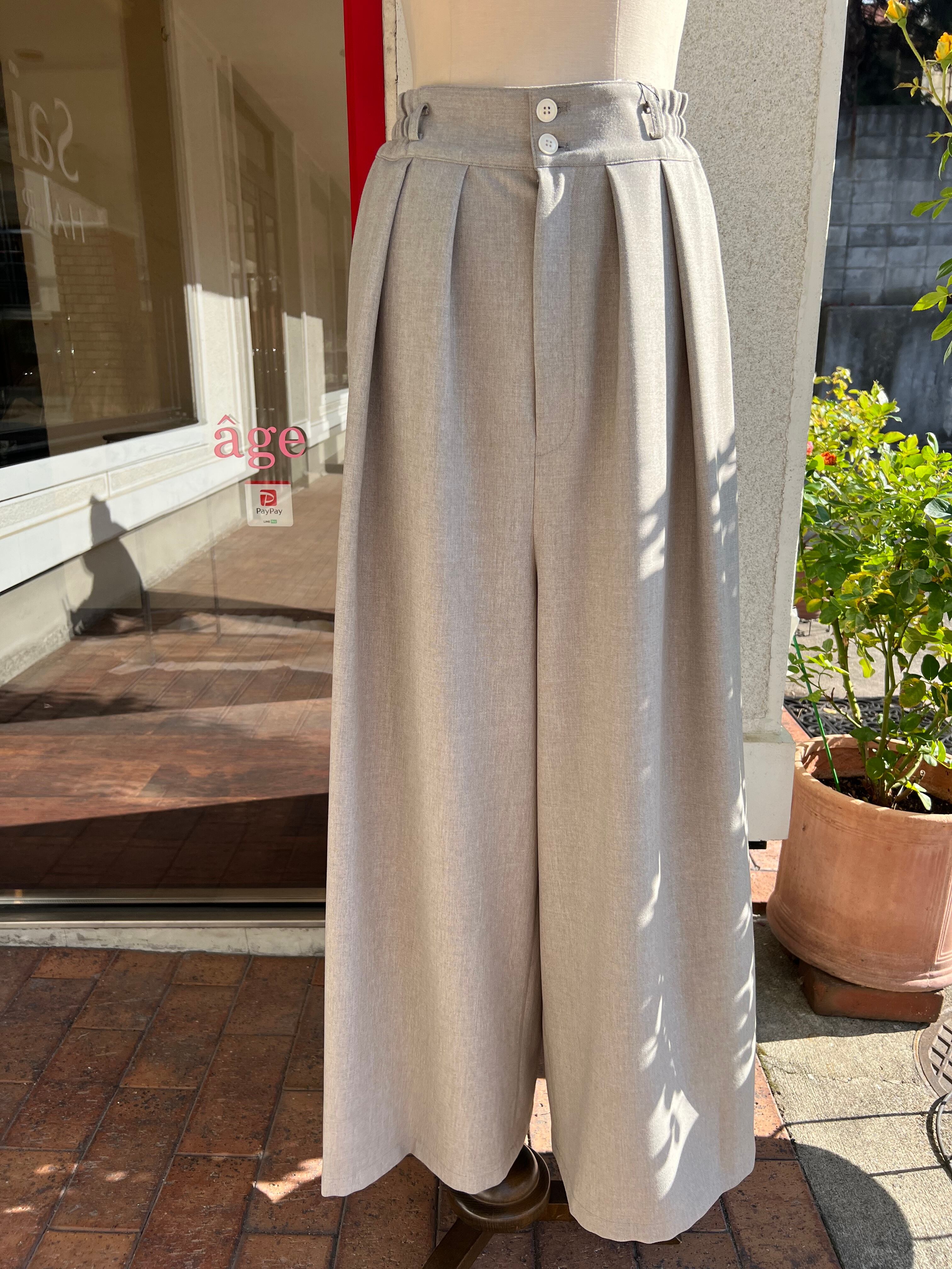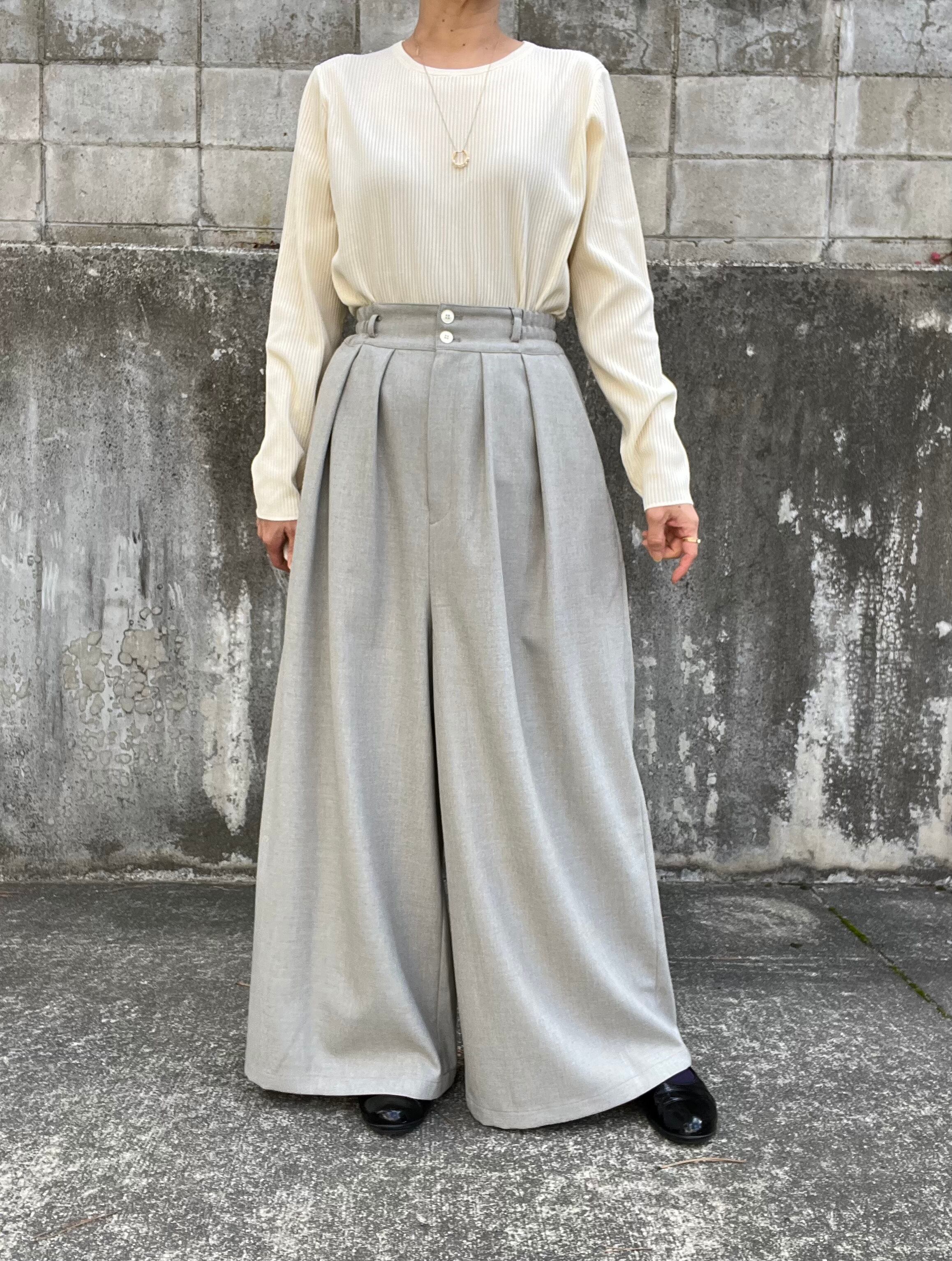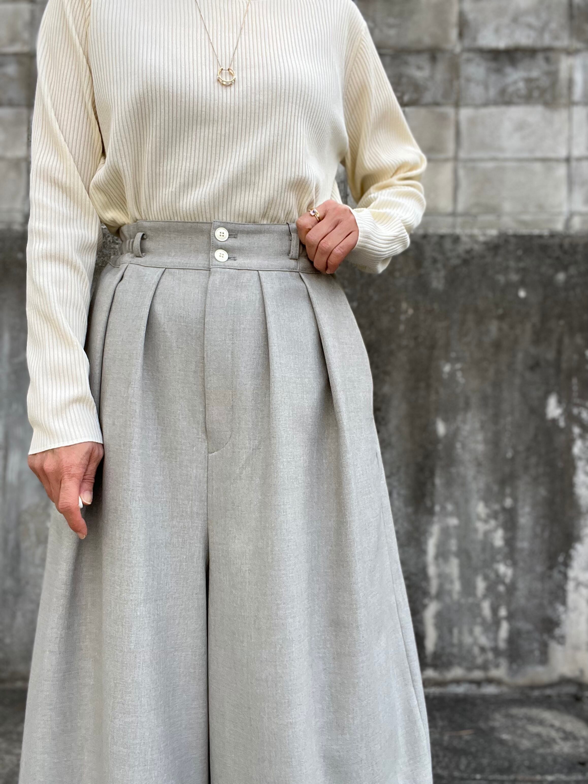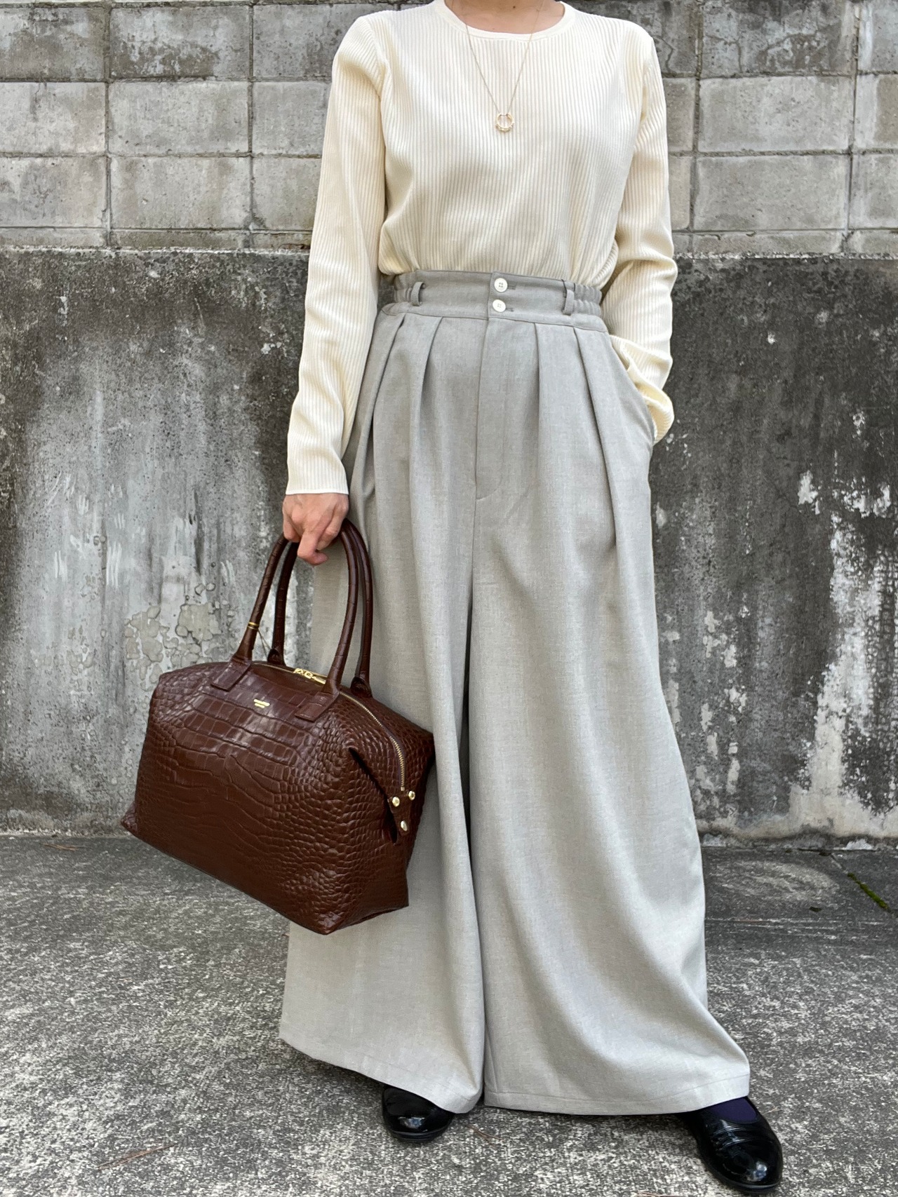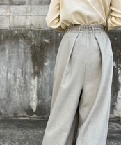 温かみがありながら、肌当たりの良いウールライクな生地を採用したワイドパンツ