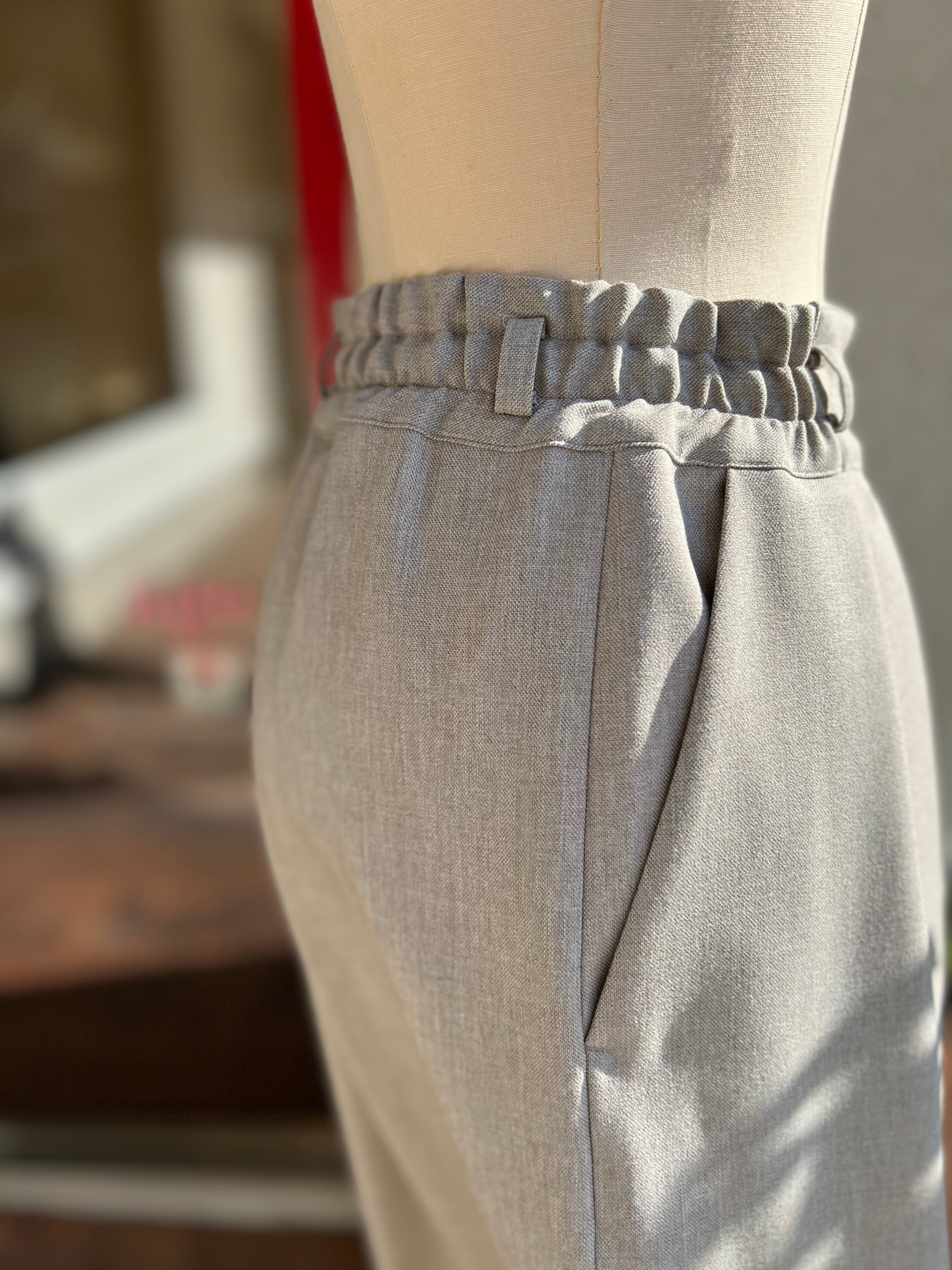 形は過去にリネンやナイロンコットンチノなどでもお馴染みの定番のワイドパンツです