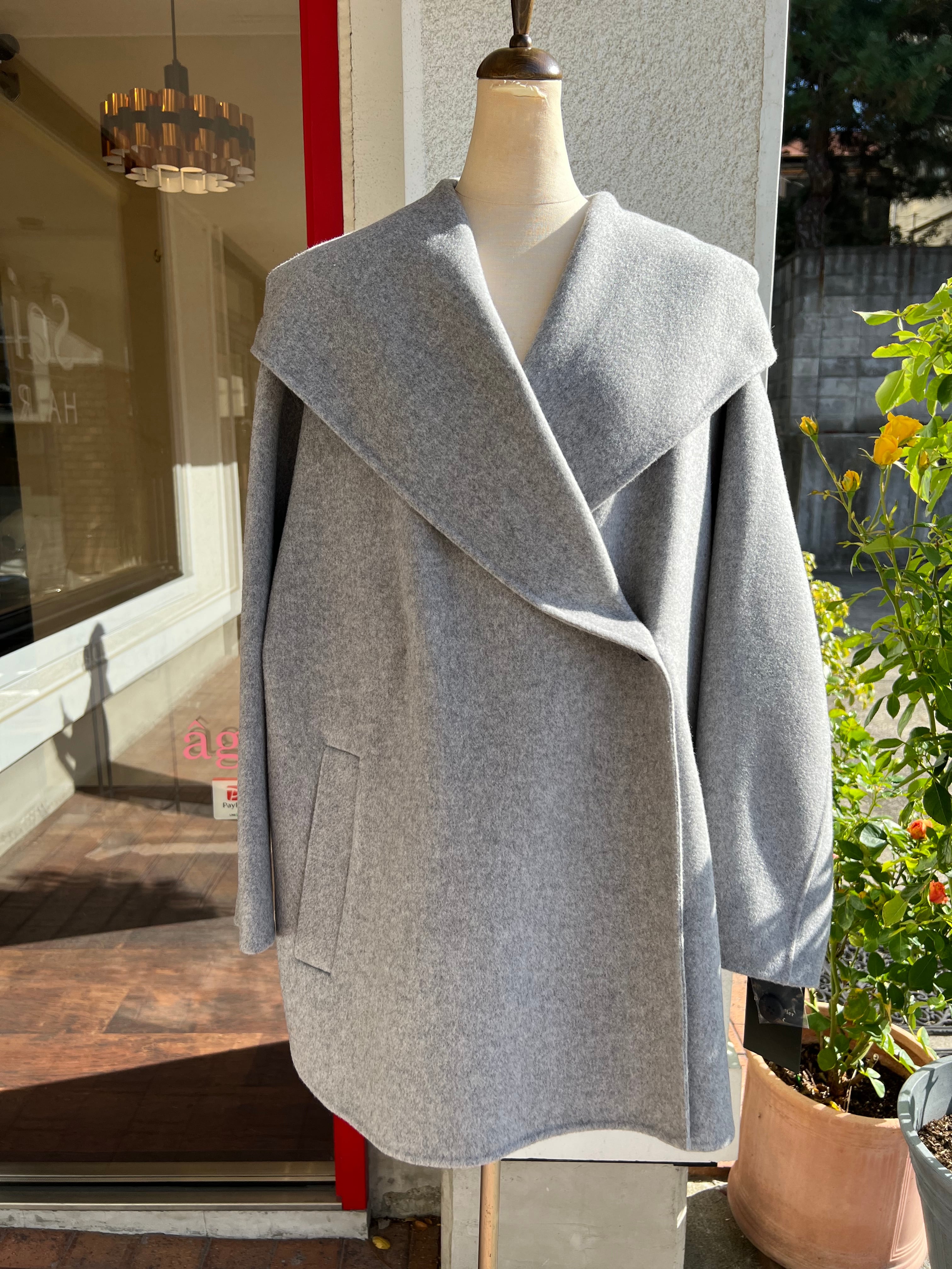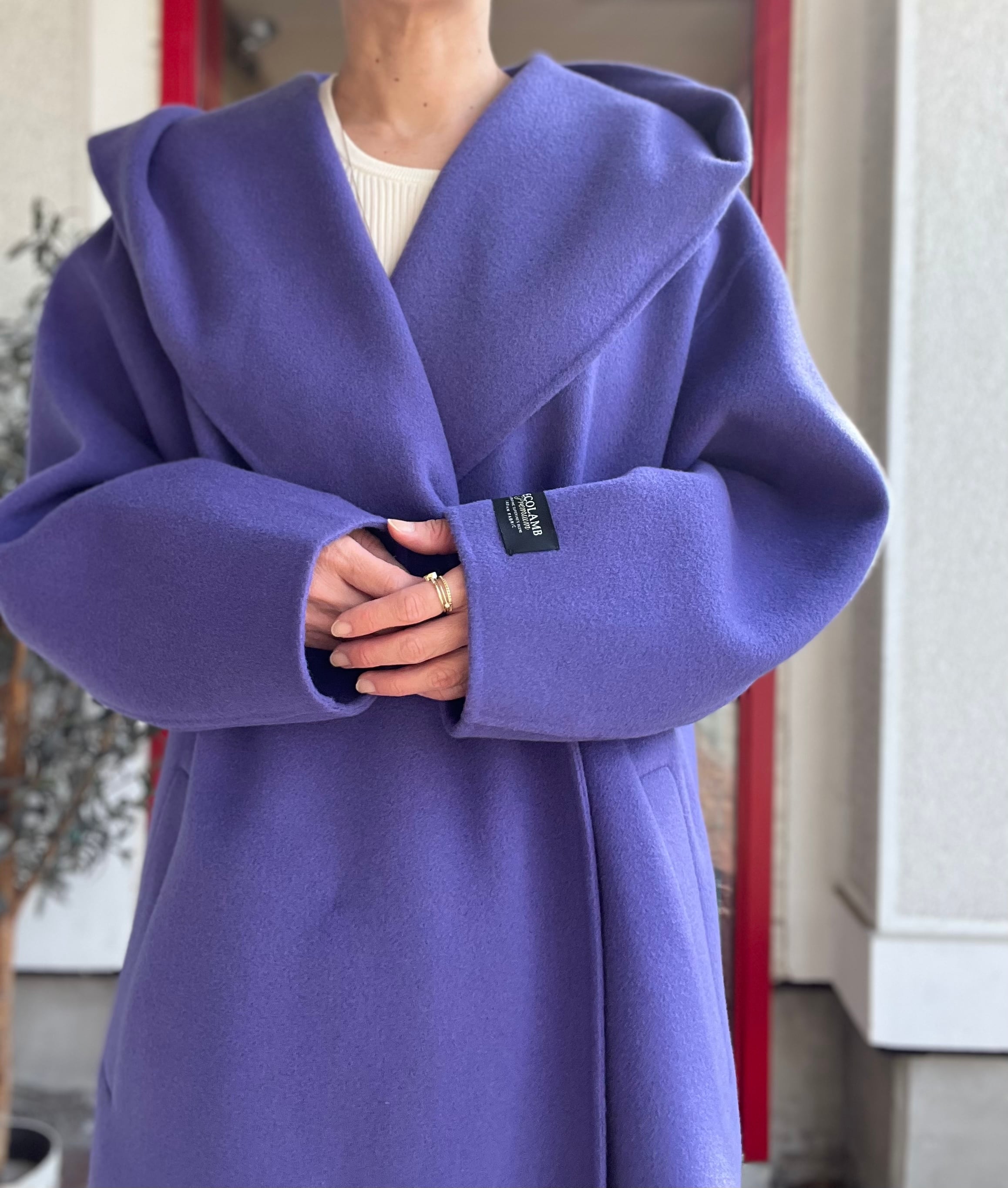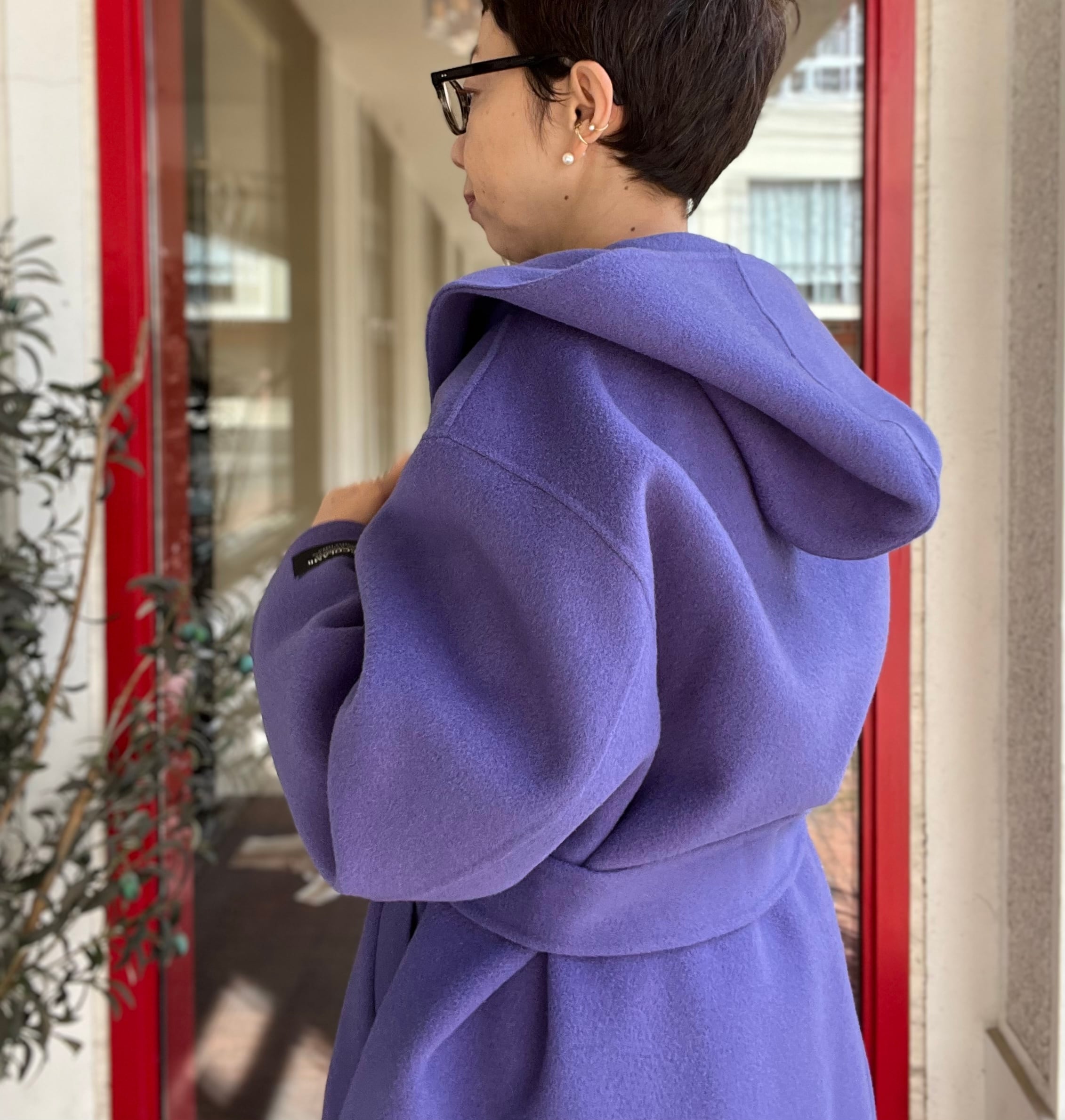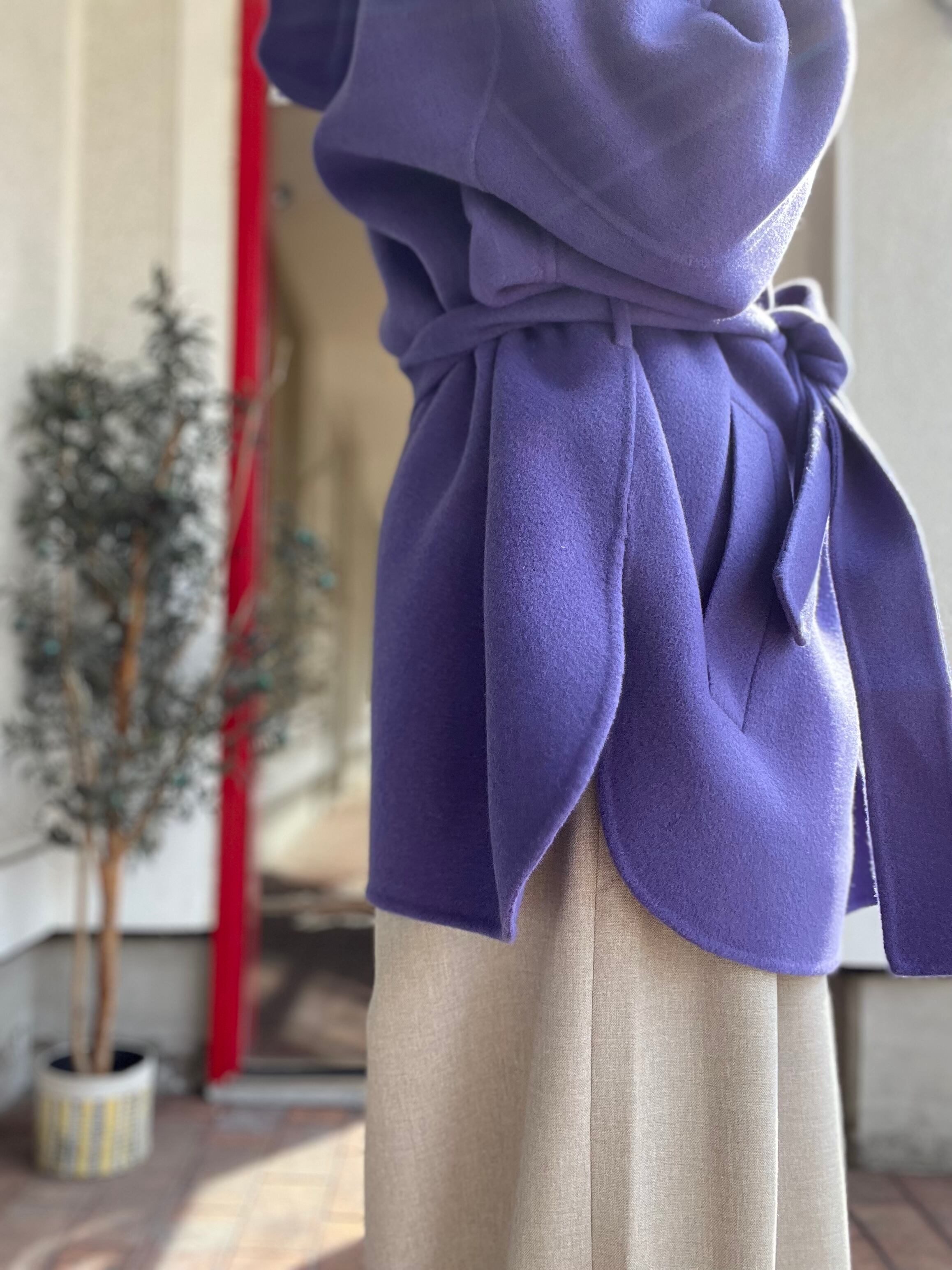 ラフに羽織のような着こなしから、付属のベルトでウエストマークしスタイルアップと