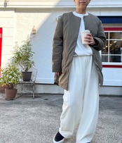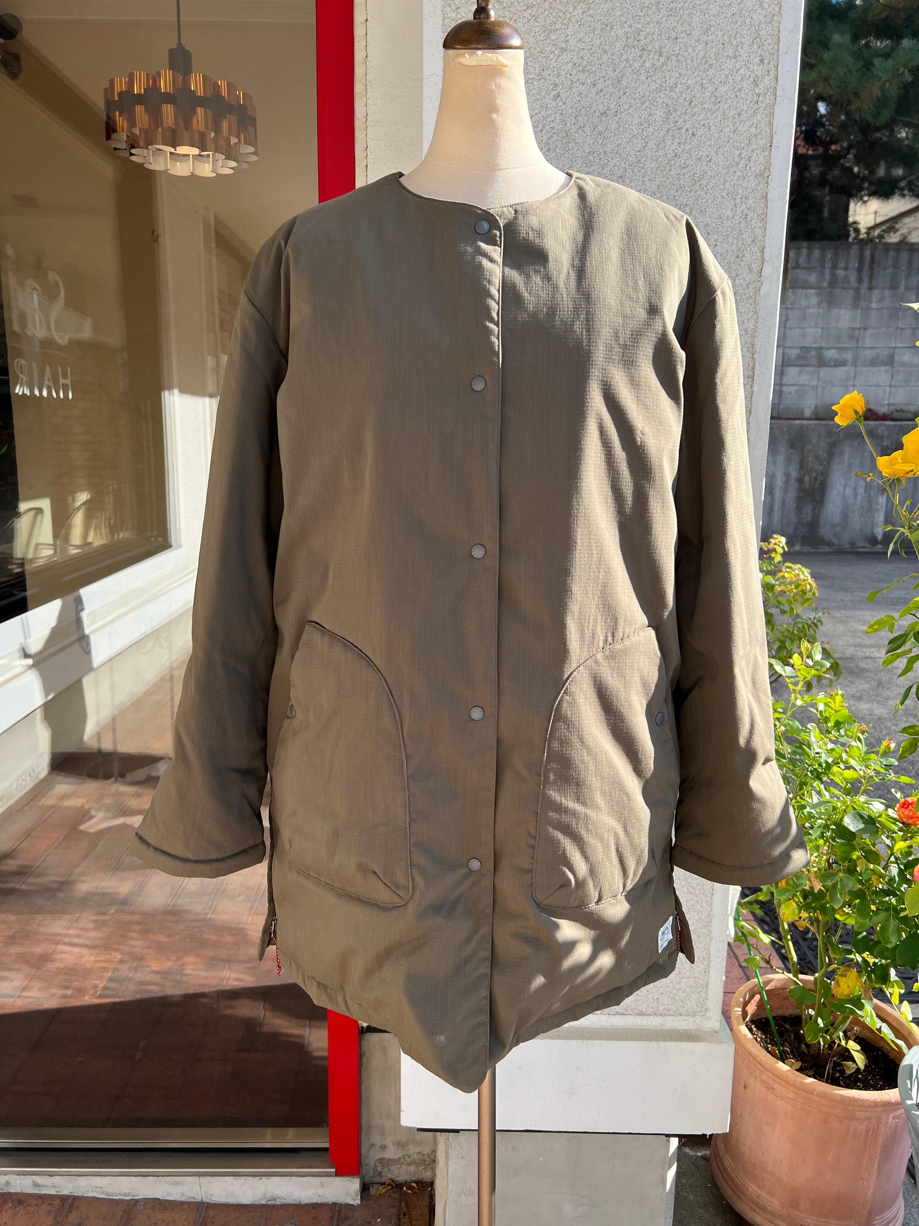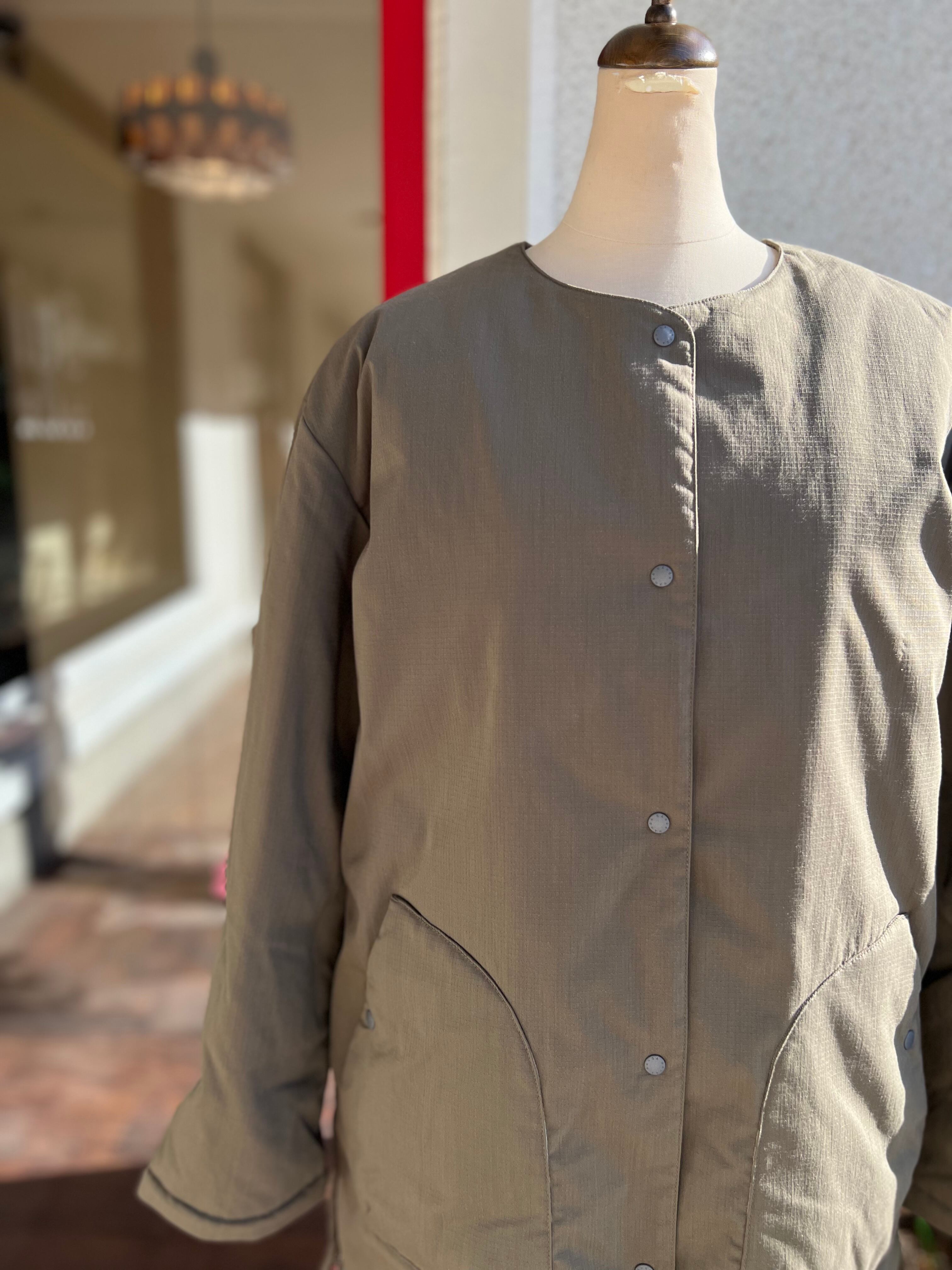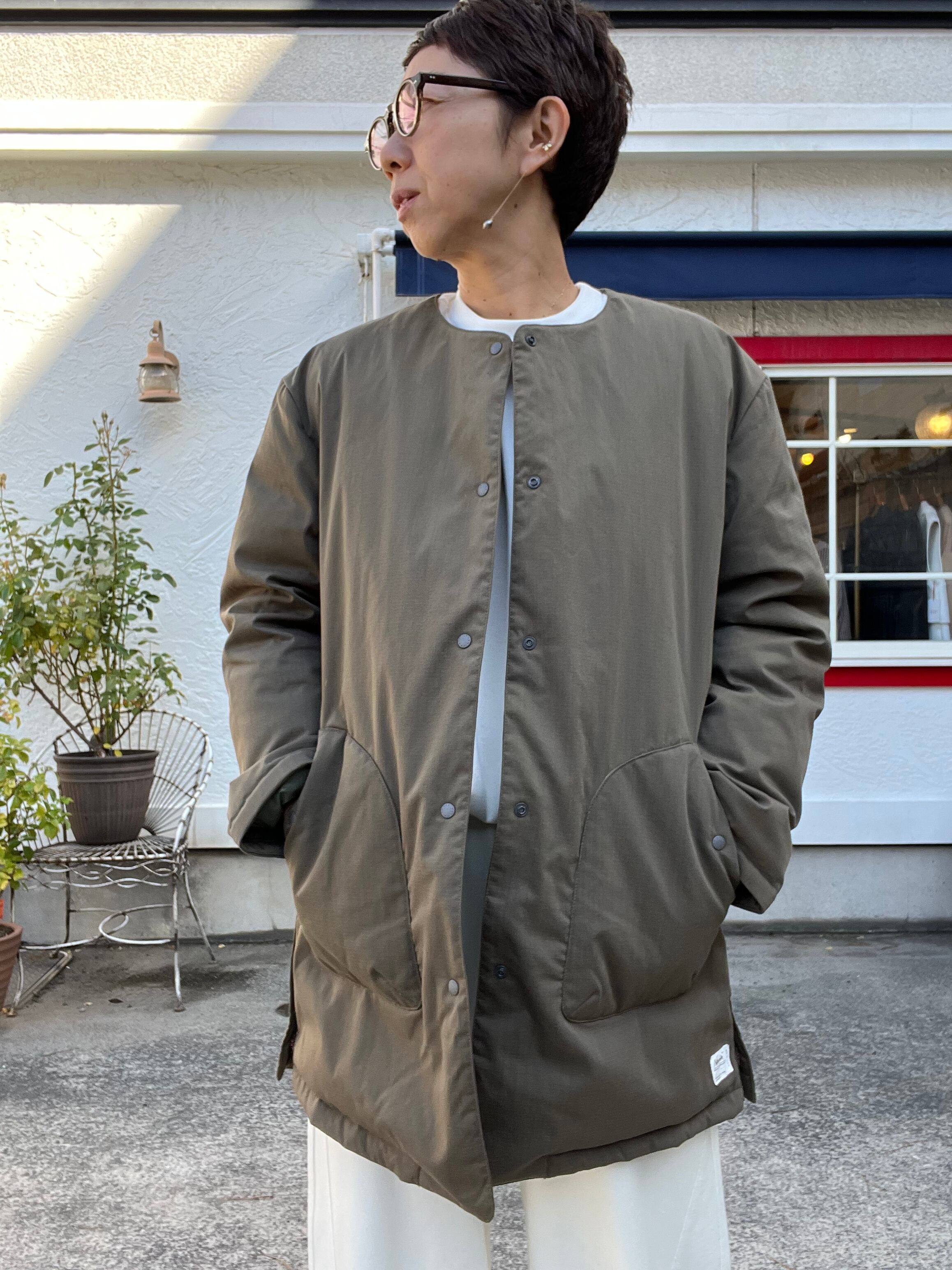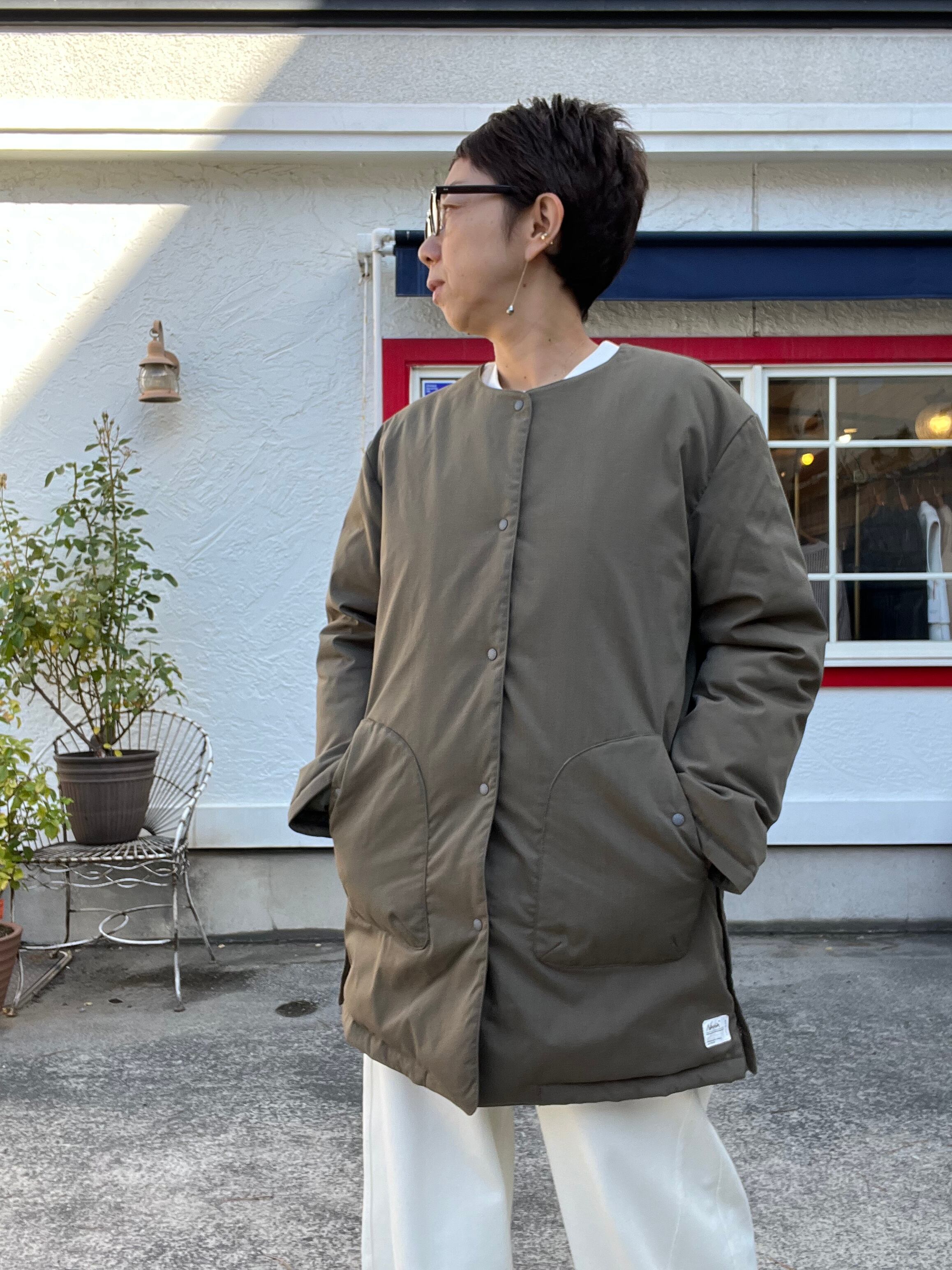 ノーカラーデザインで、すっきりとした印象とパーカーやタートルネックなども合わせ、多様なコーディネートを楽しめます