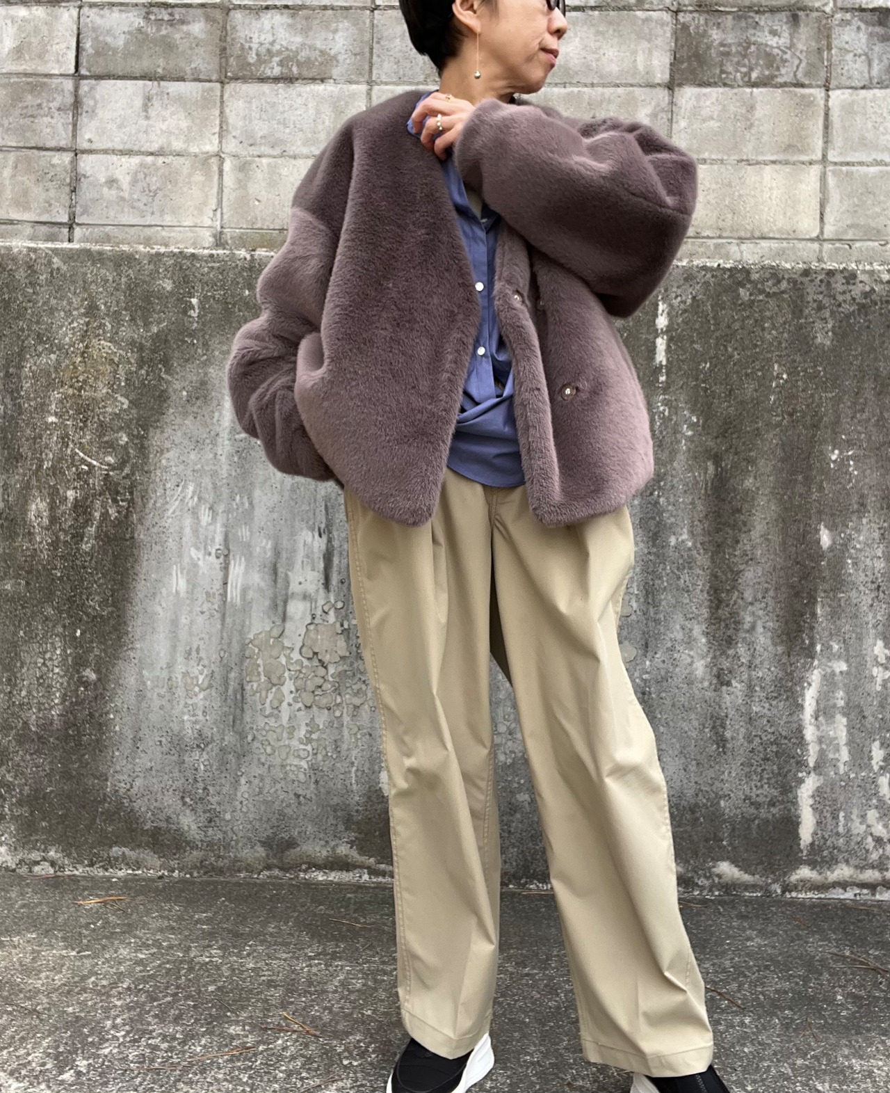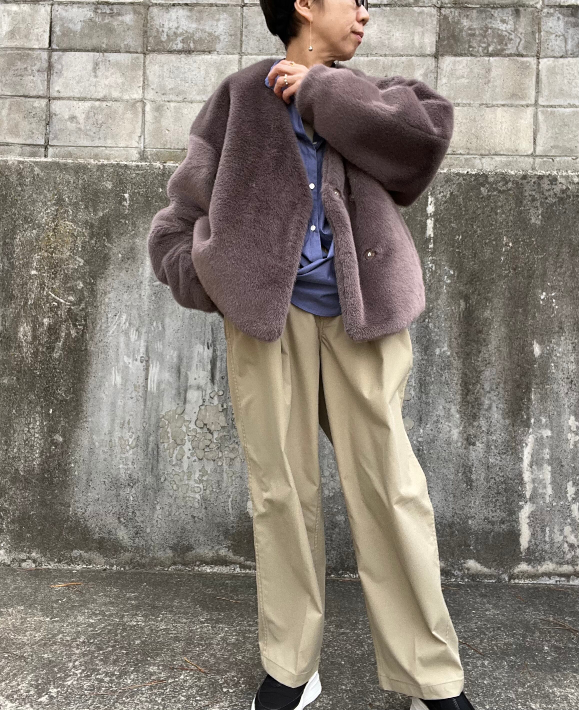 リアルのようなタッチに密度の高い上品なフェイクファージャケット