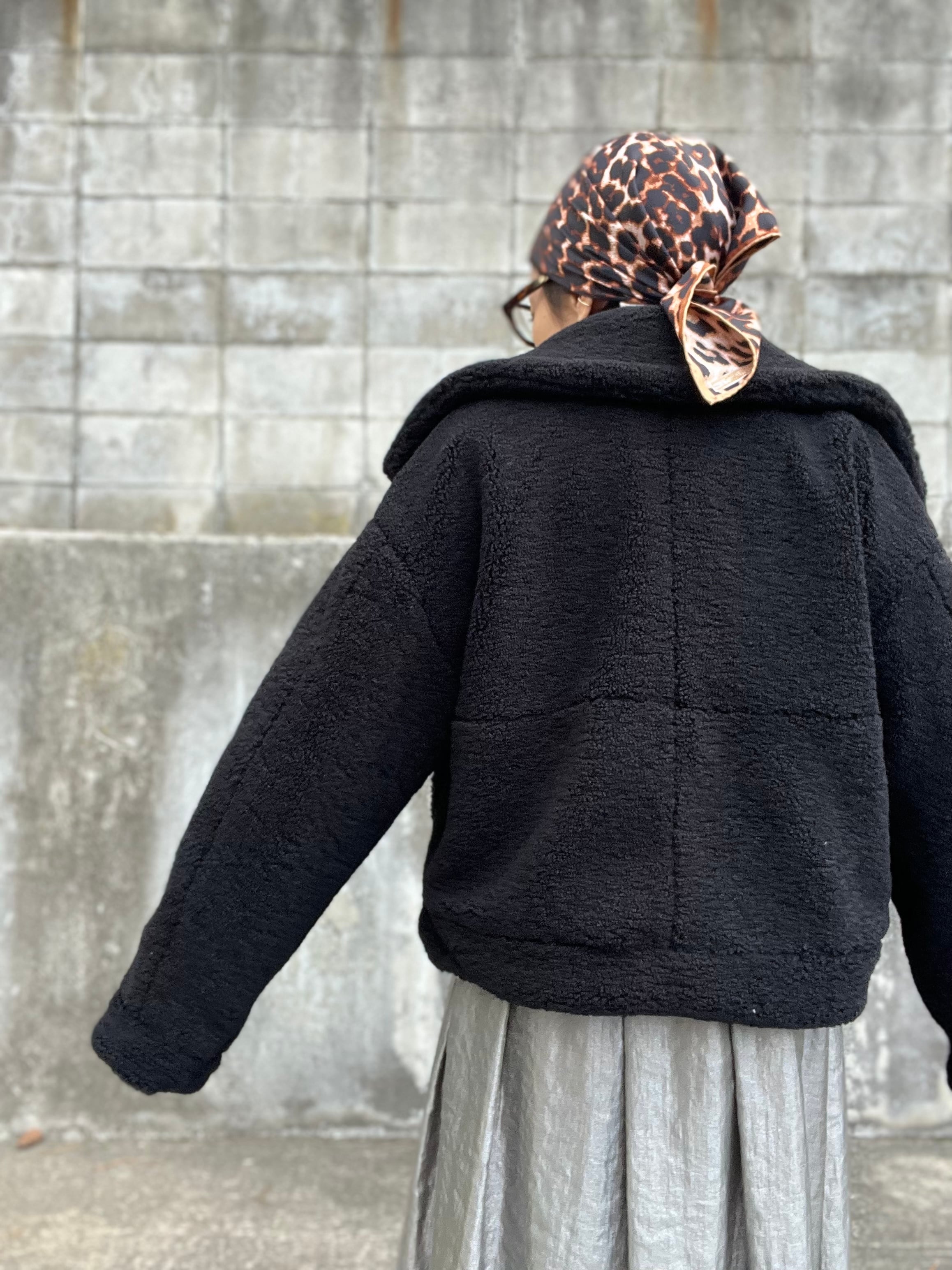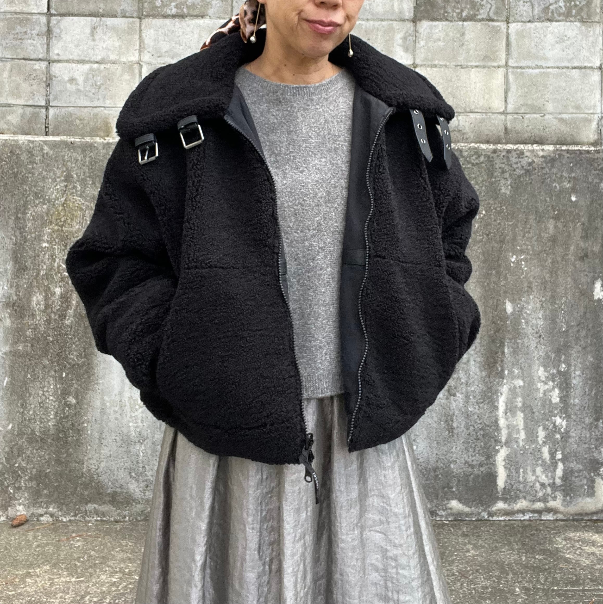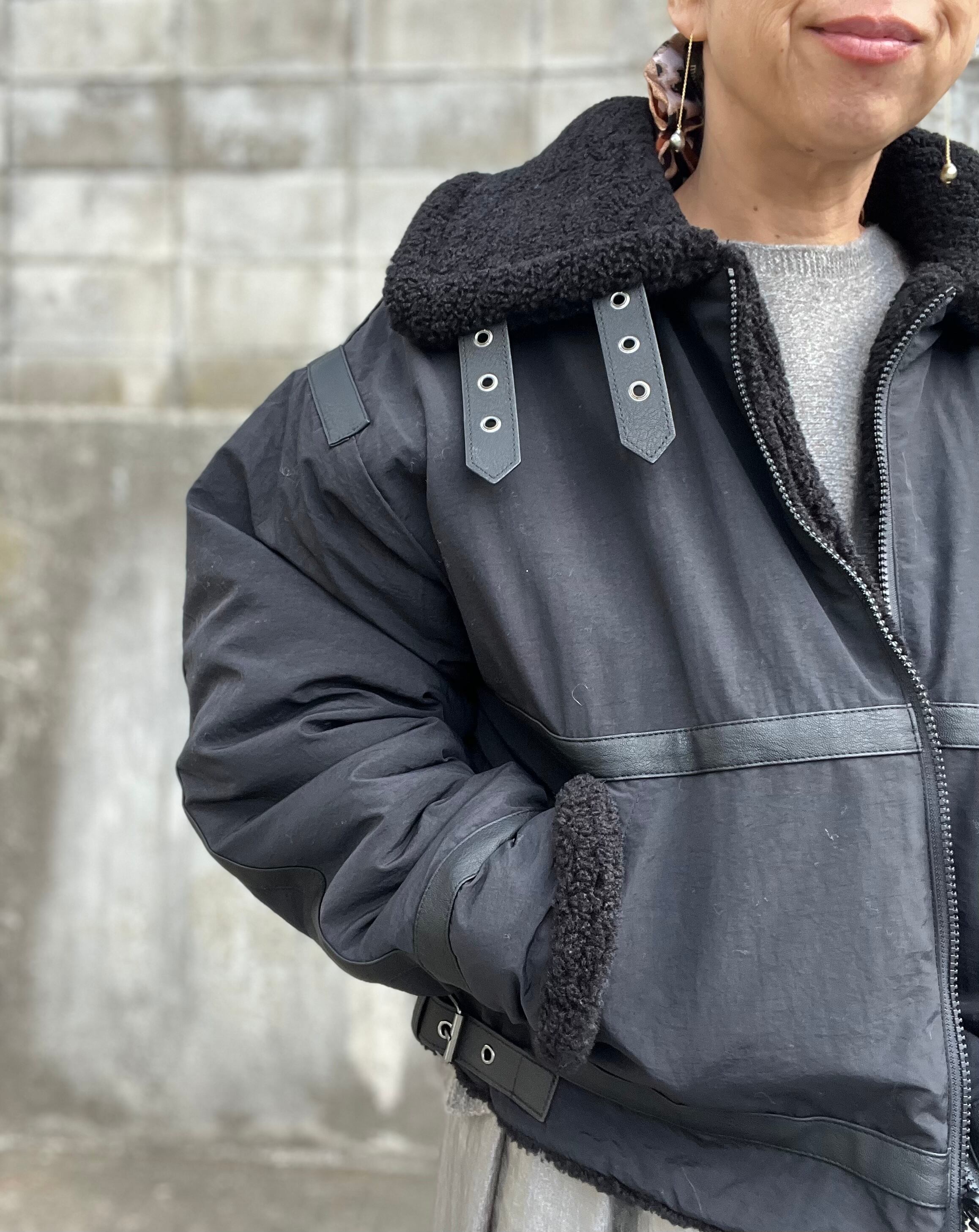 ポリエステルボアとナイロングログランのリバーシブルボアブルゾン