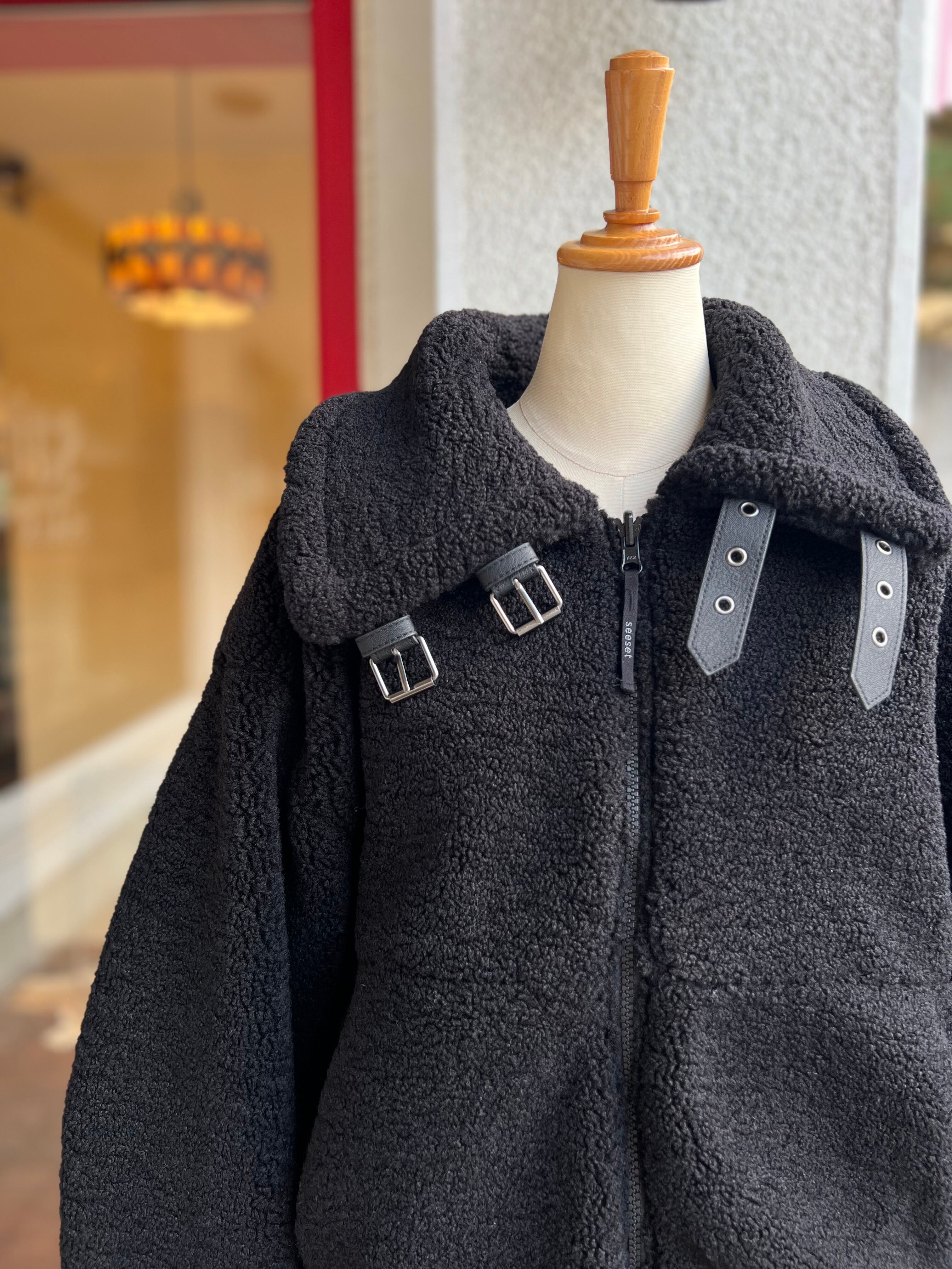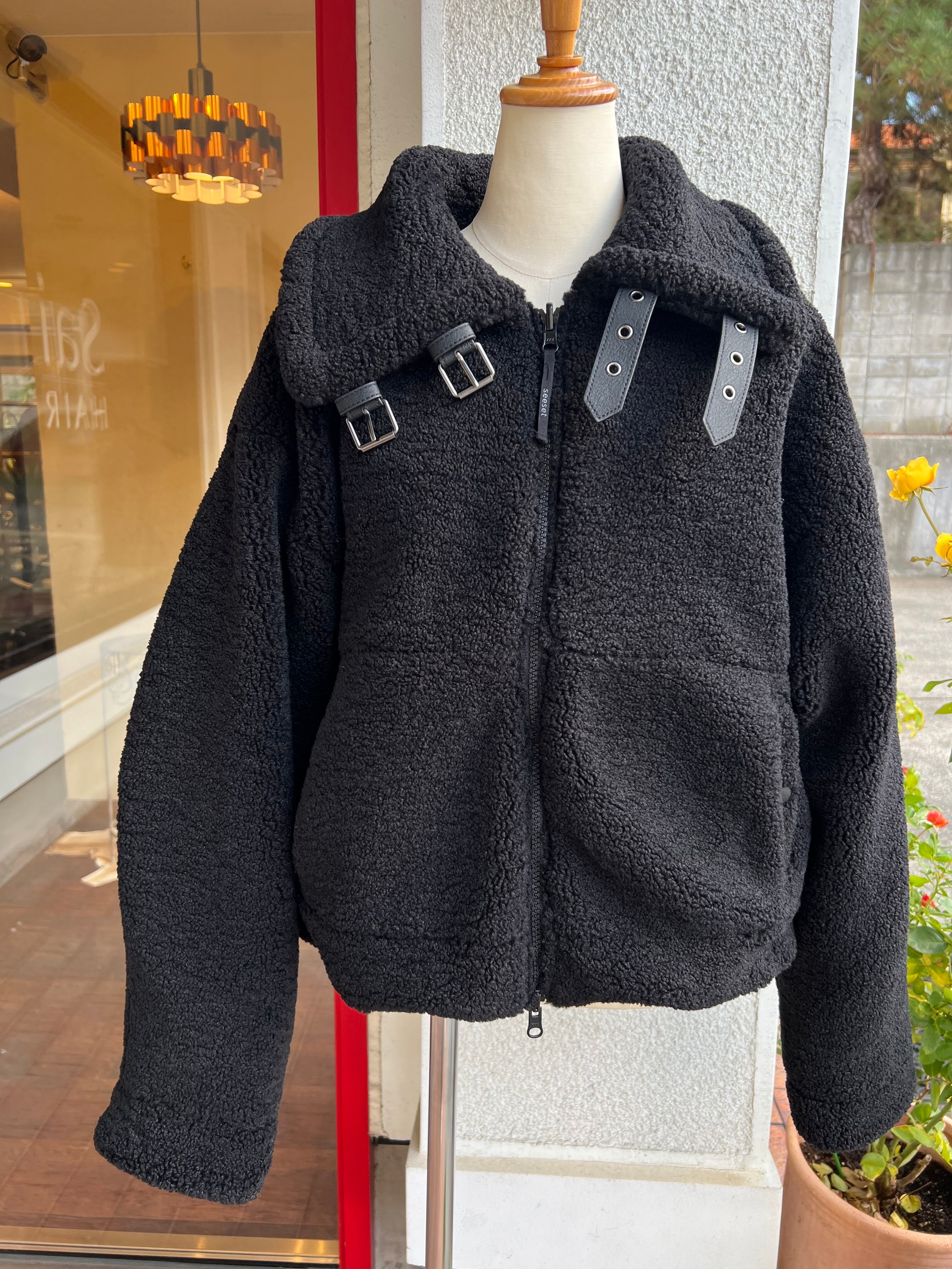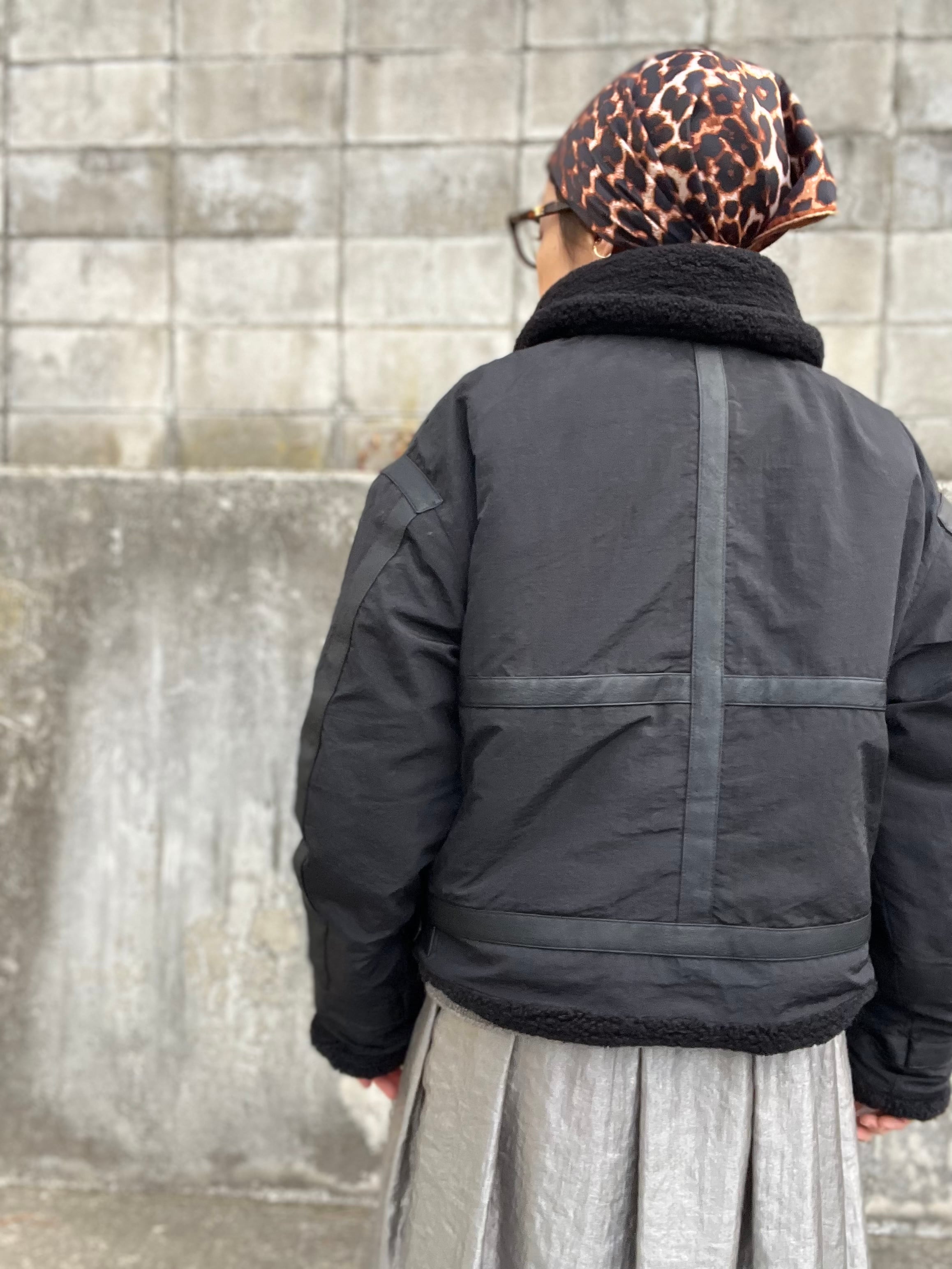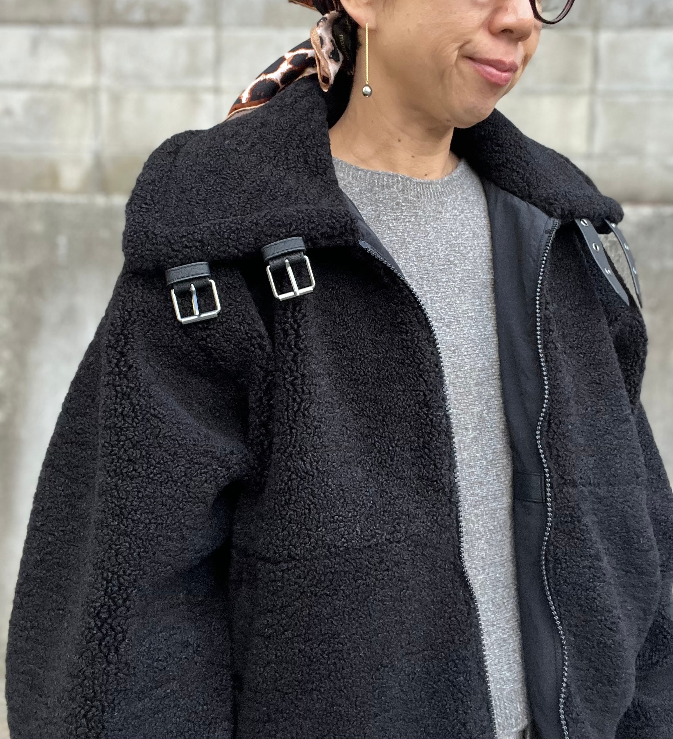 ポリエステルボアとナイロングログランのリバーシブルボアブルゾン