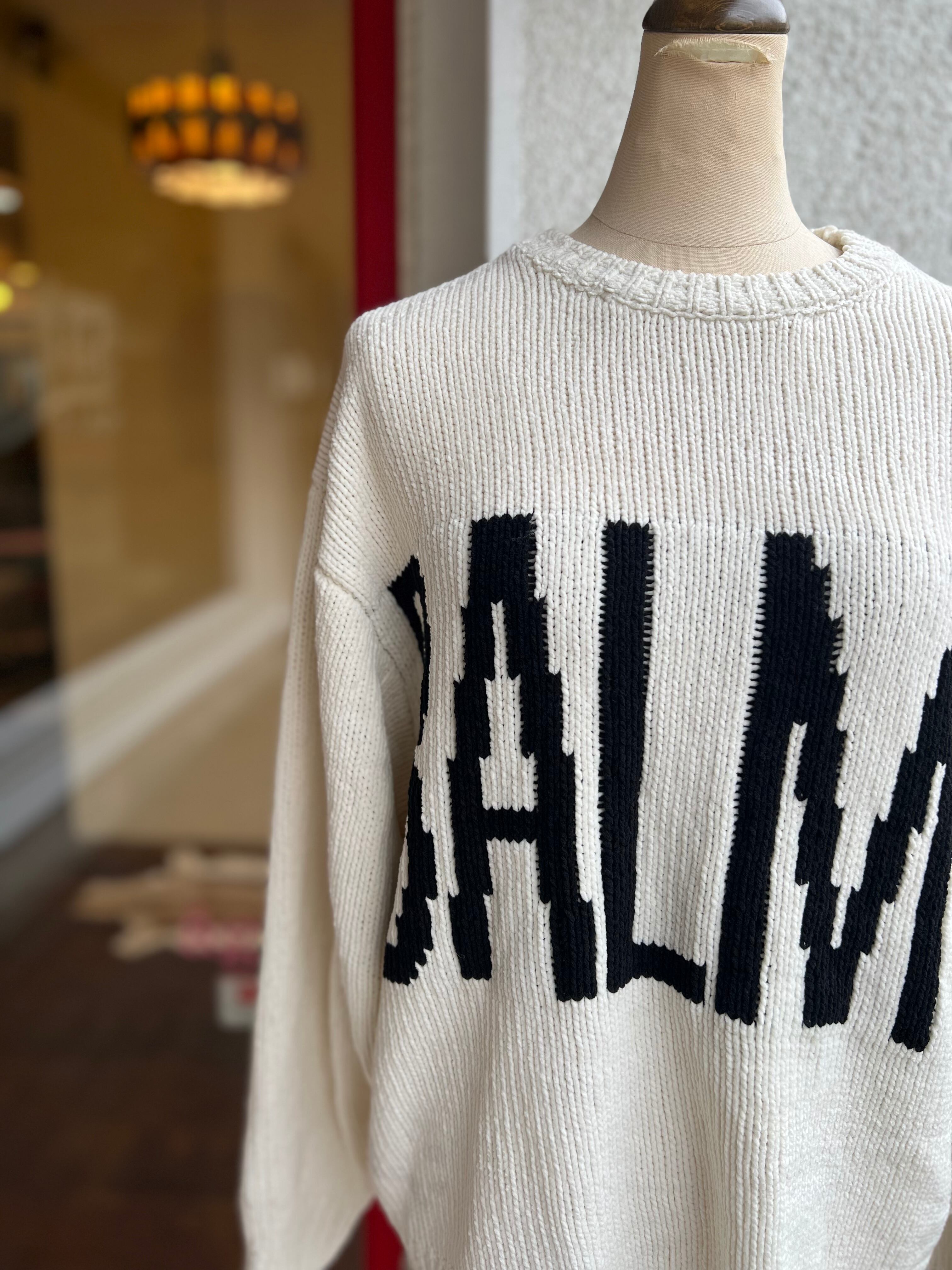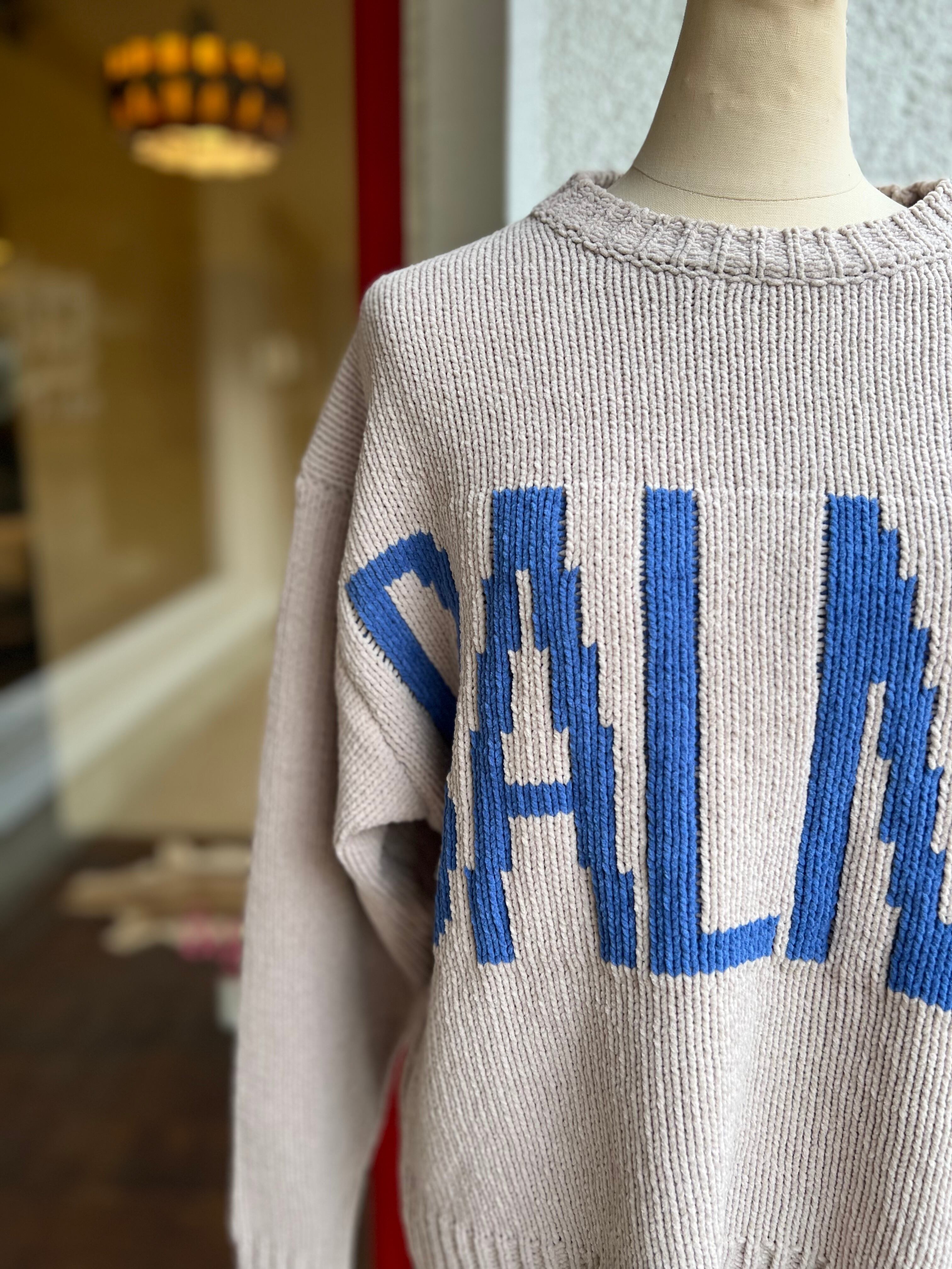 フワッとしっとり柔らかな、チクチク感なく着心地の良いモール糸のロゴニット