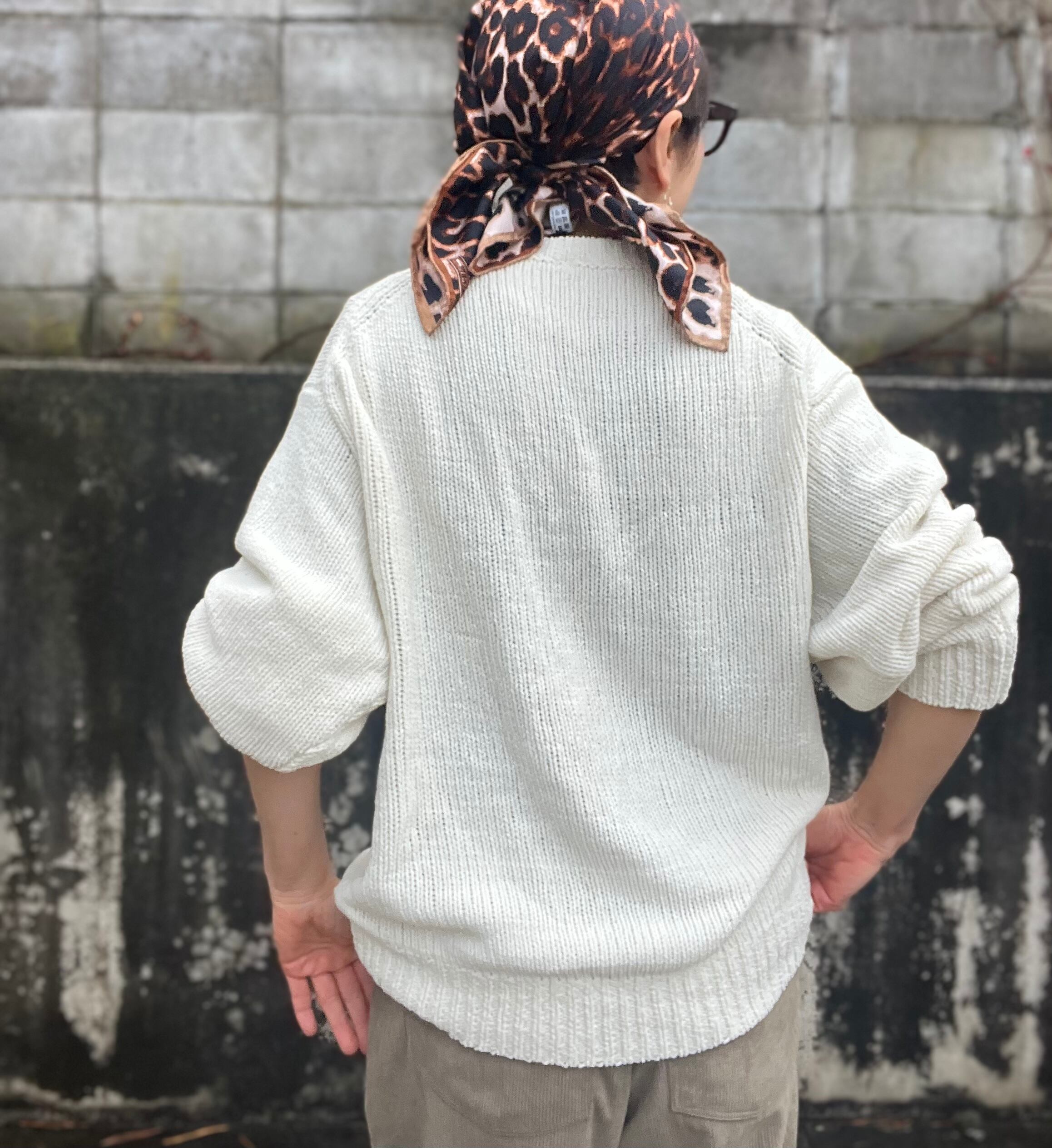 肩線が落ちたゆとりのあるシルエットは、シャツや羽織とのレイヤードもしやすく