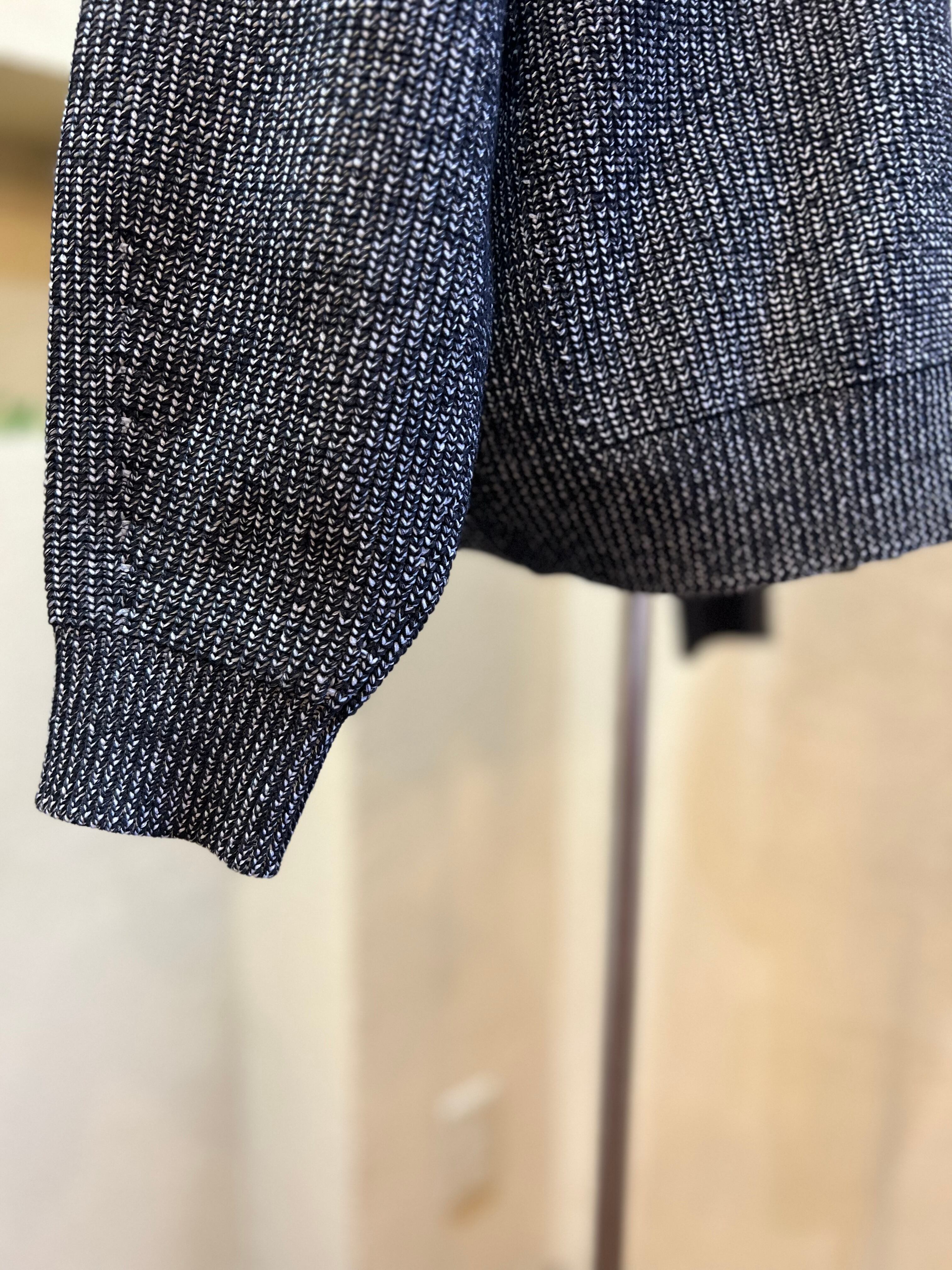 表側に綿、裏側にポリエステル糸を走らせることで、型崩れを防止し、綿ニットに比べ乾きが早く、表情にも絶妙なメランジ感が出るのが特徴です