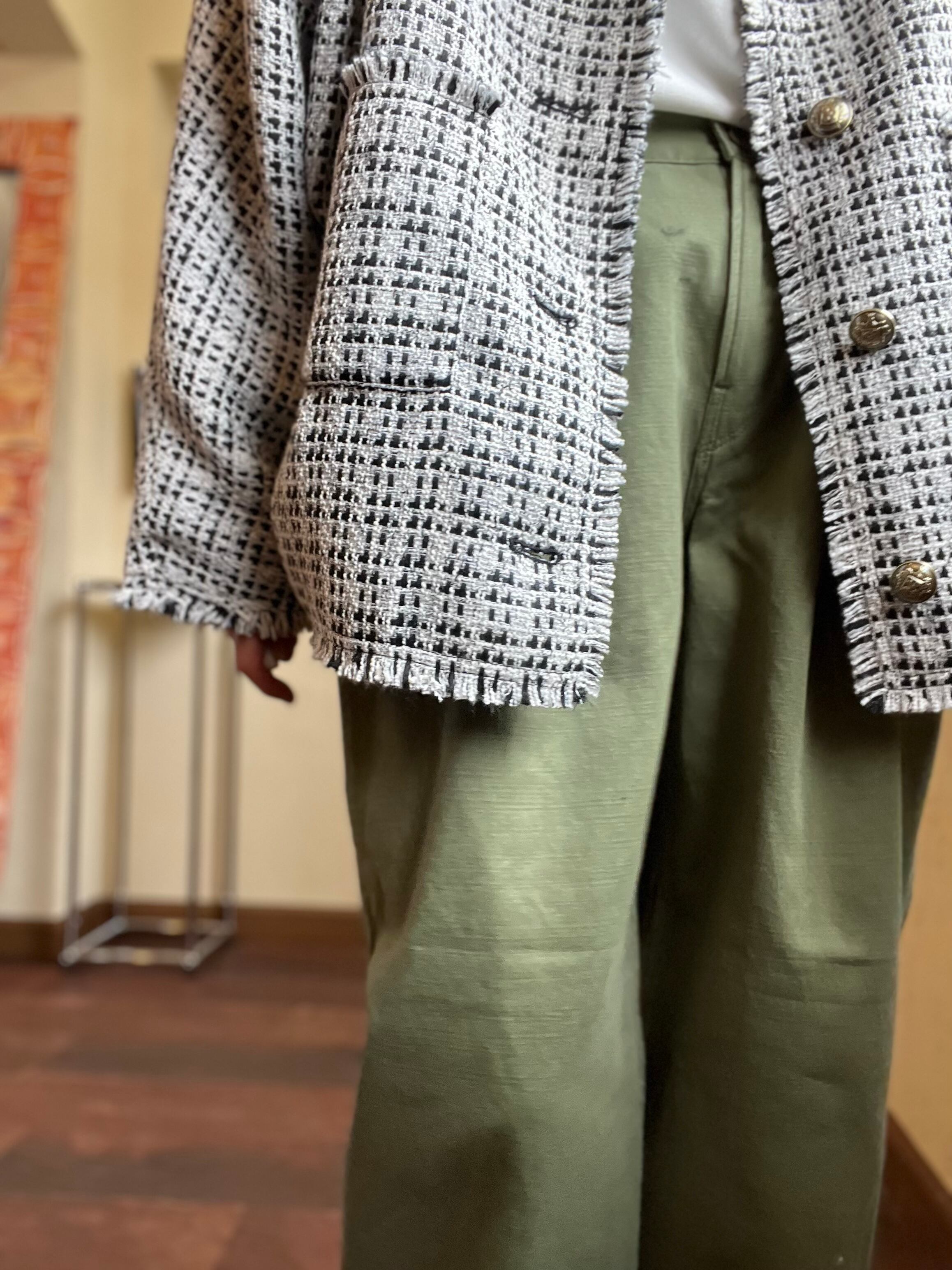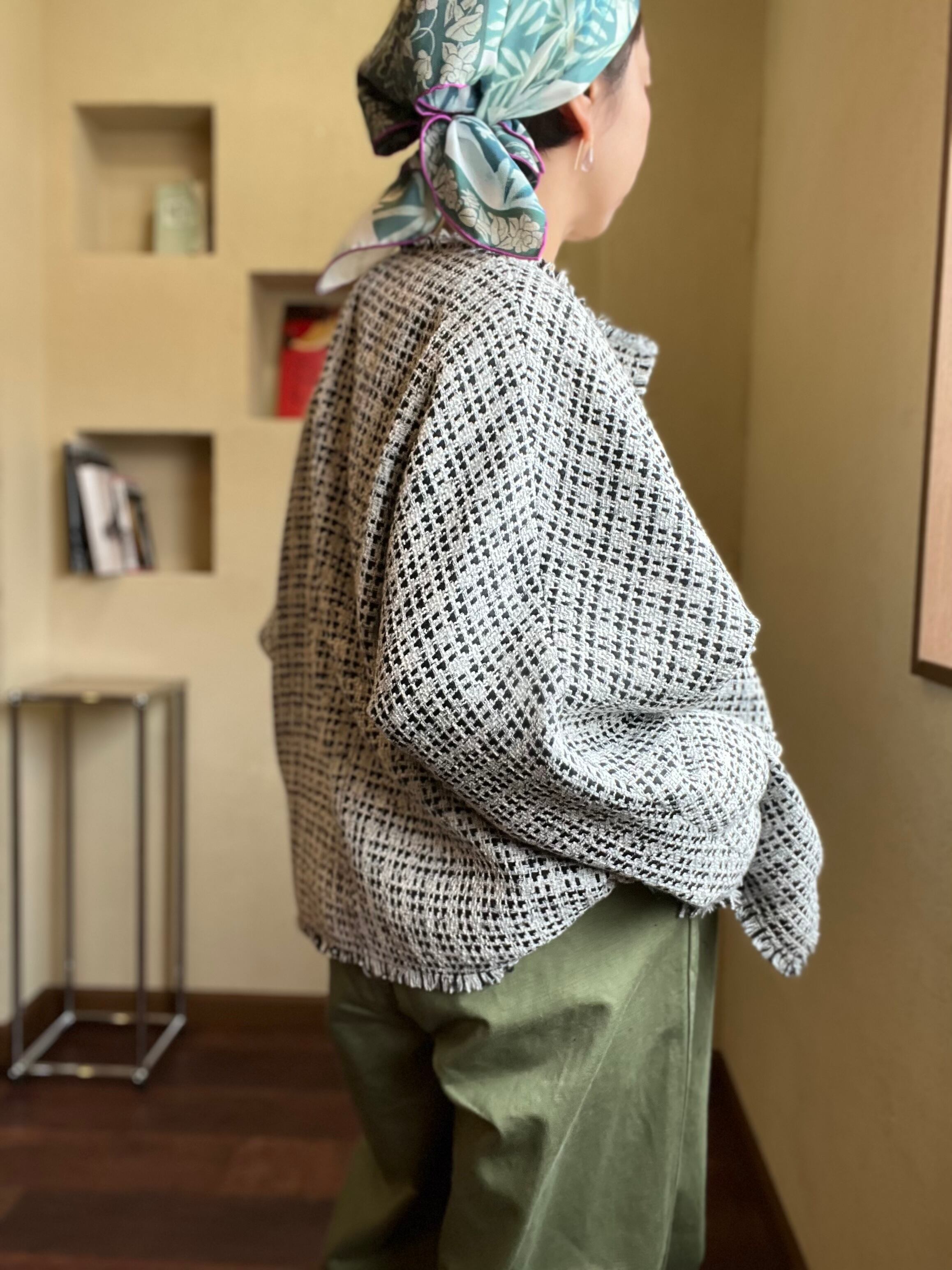 柔らかい風合いのカーディガン感覚で着用できるツィードジャケット
