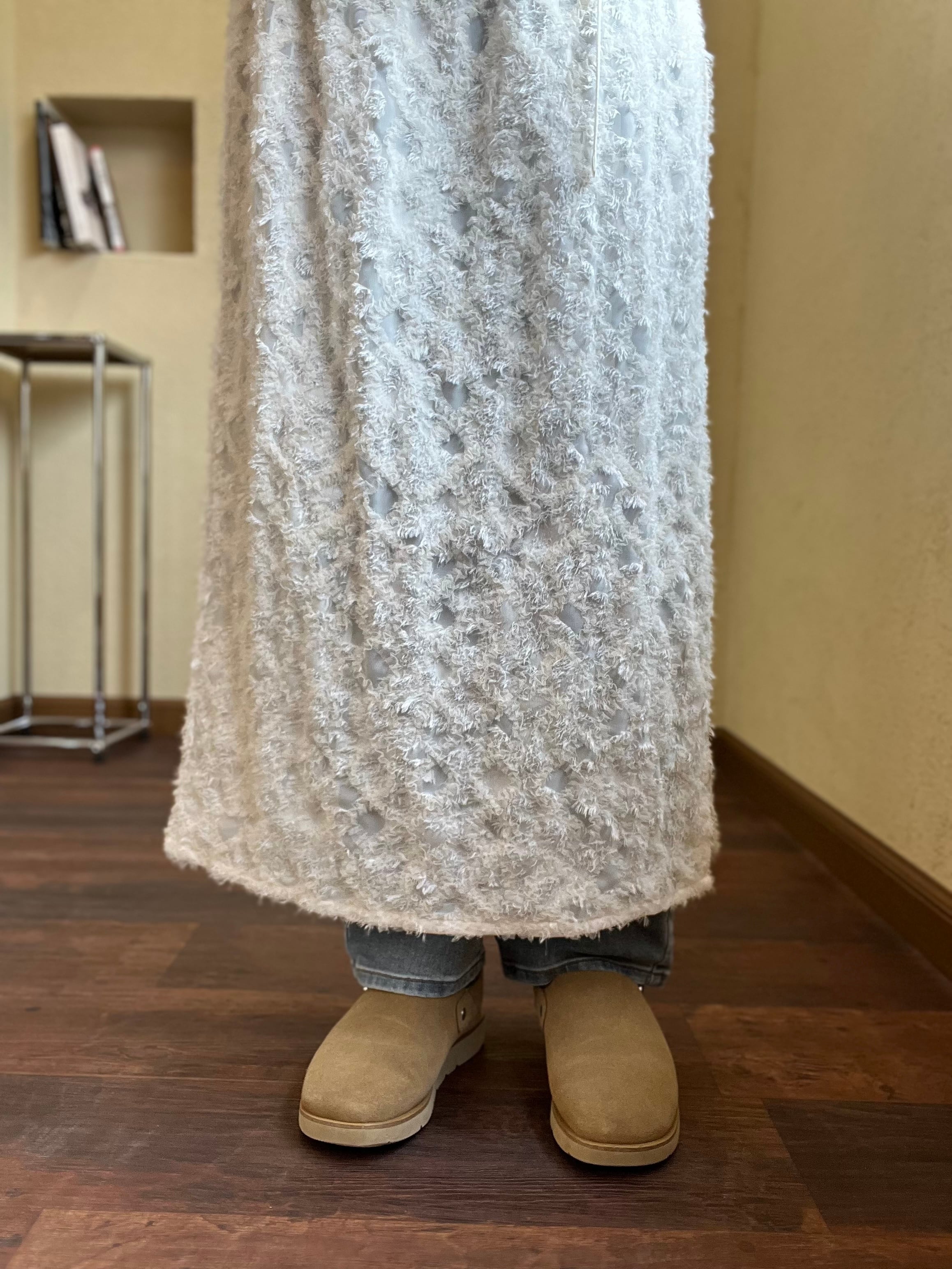 片側サイドには深くスリットが入り、ロング丈でも歩きやすく