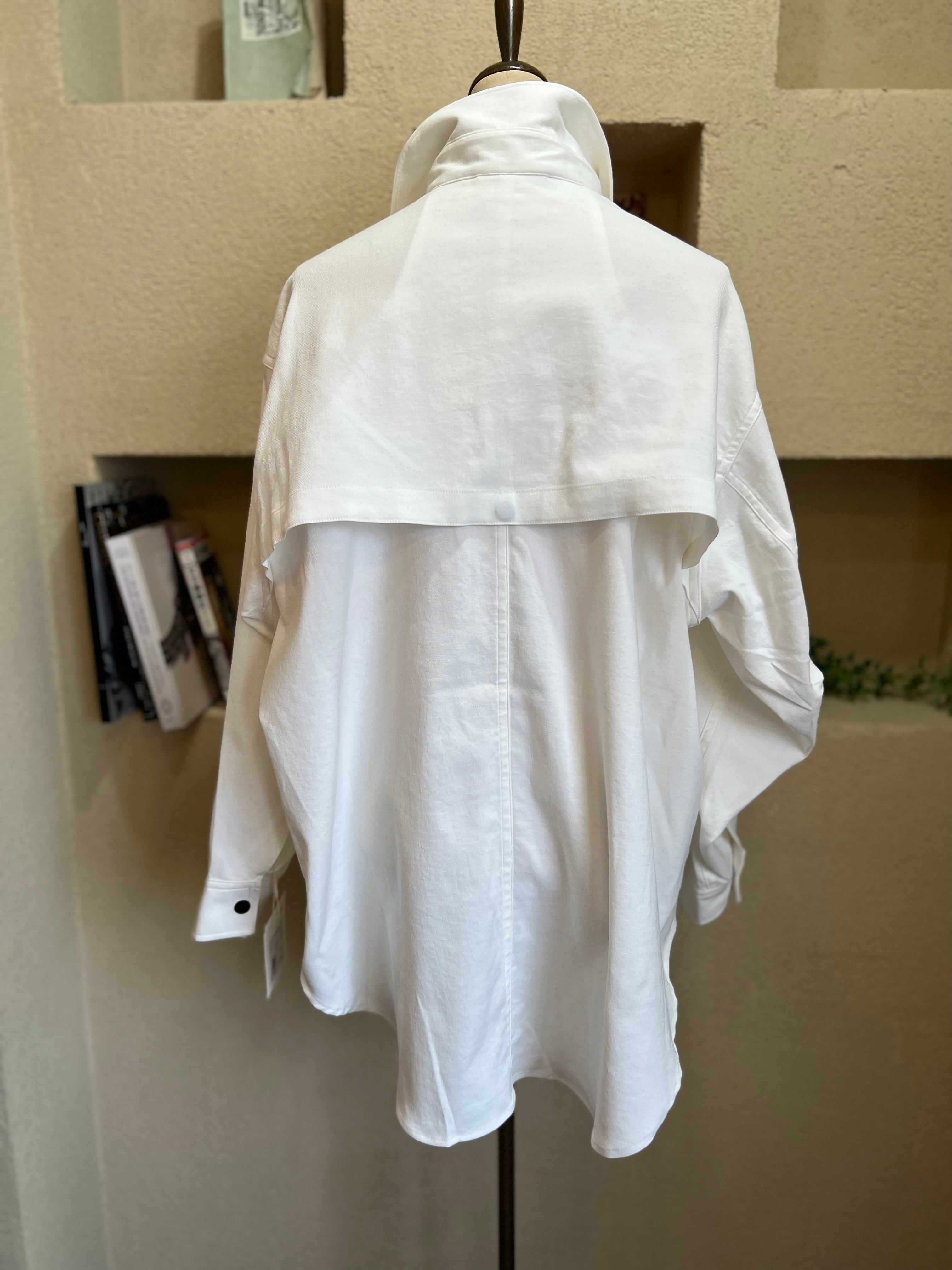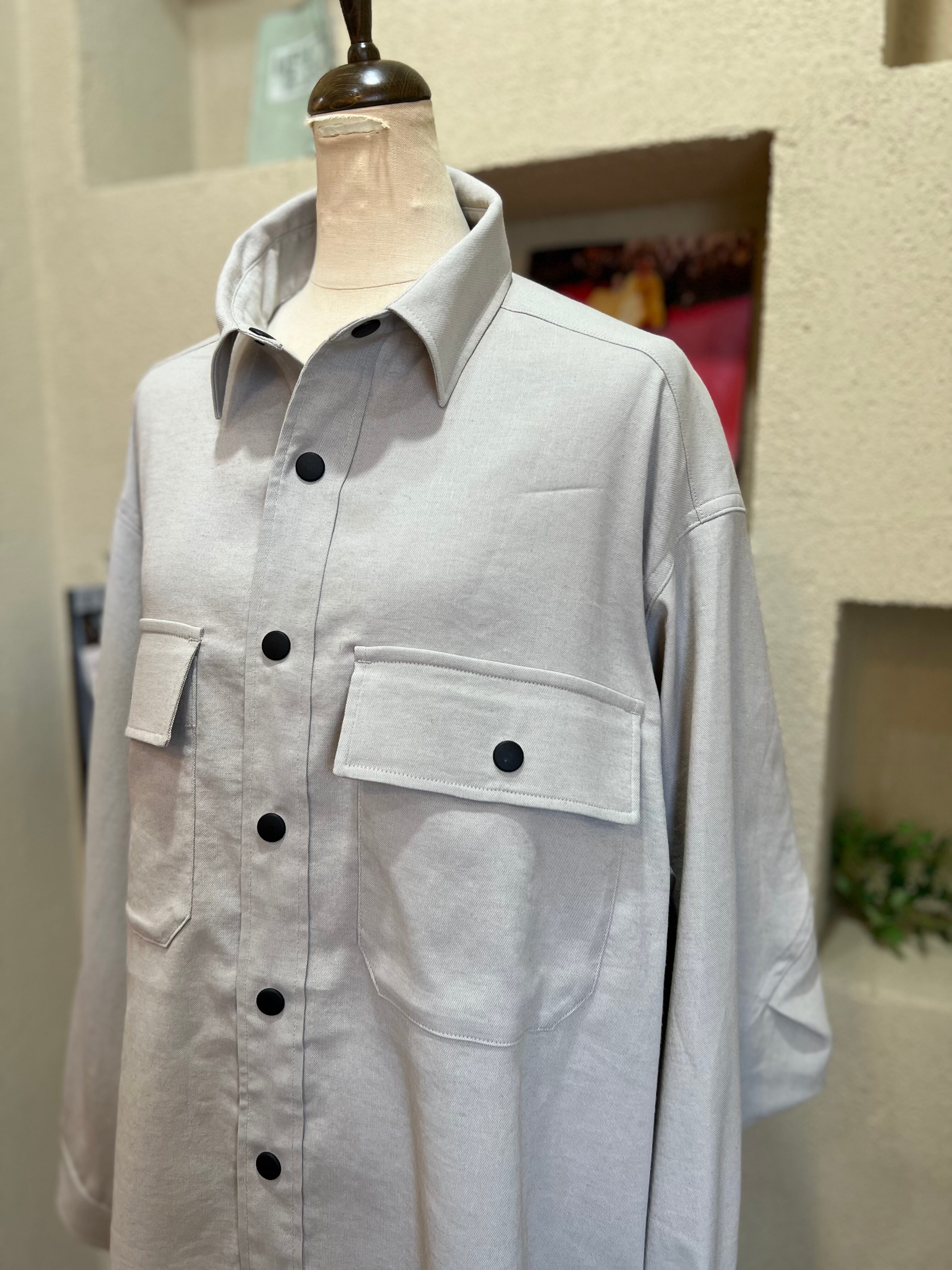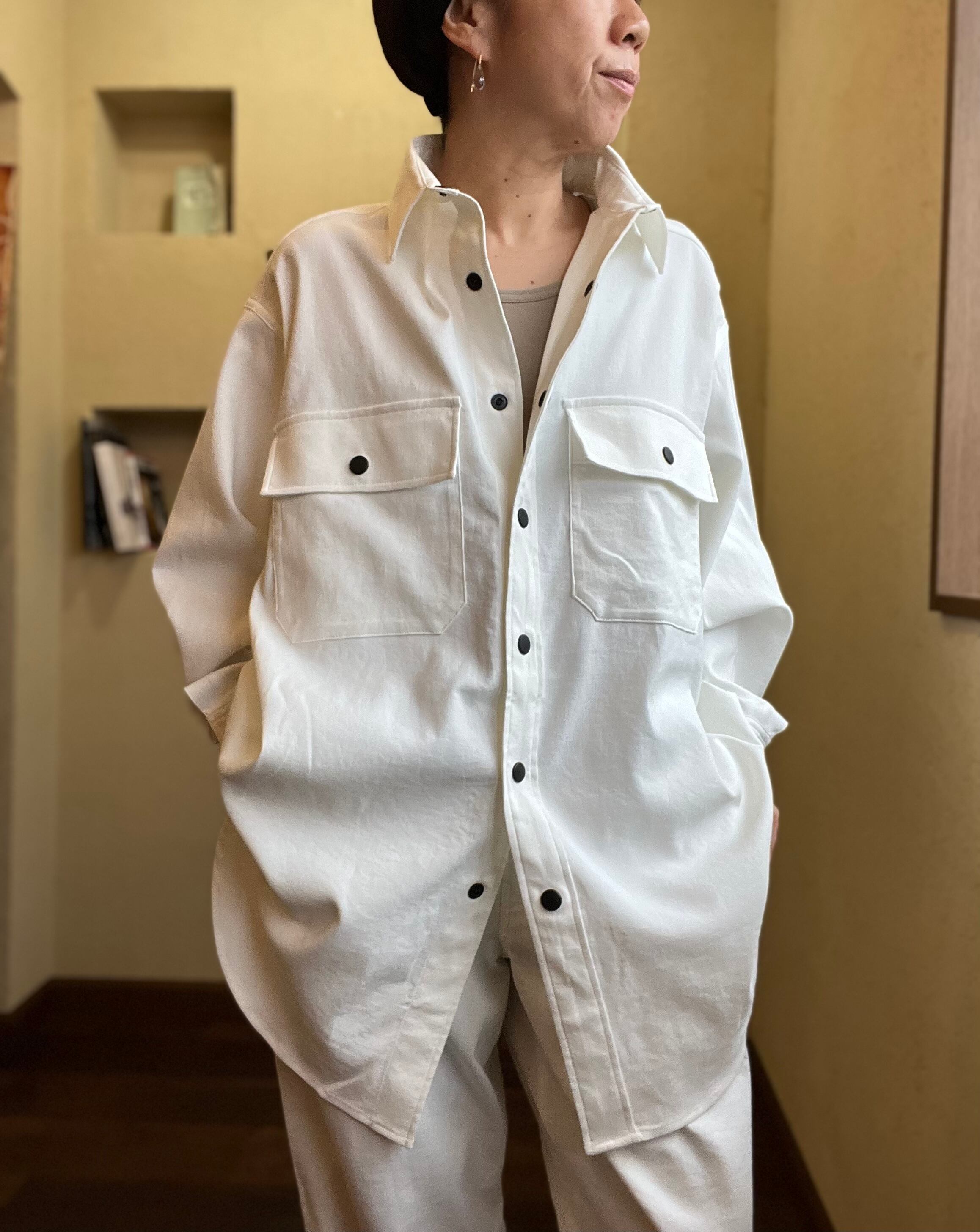 綿とリネンをミックスした天然ライクのストレッチオックスを使用したオーバーシャツ