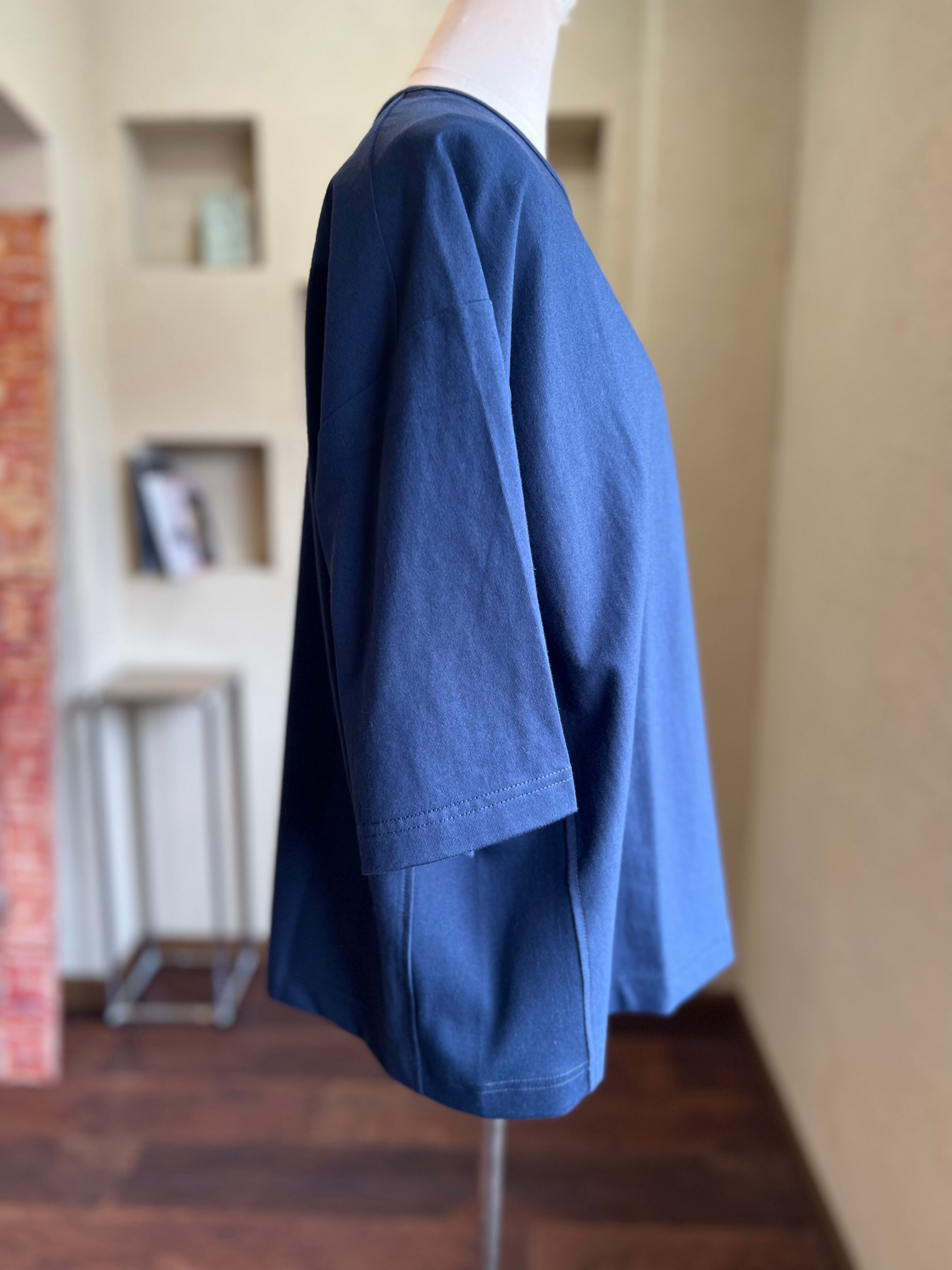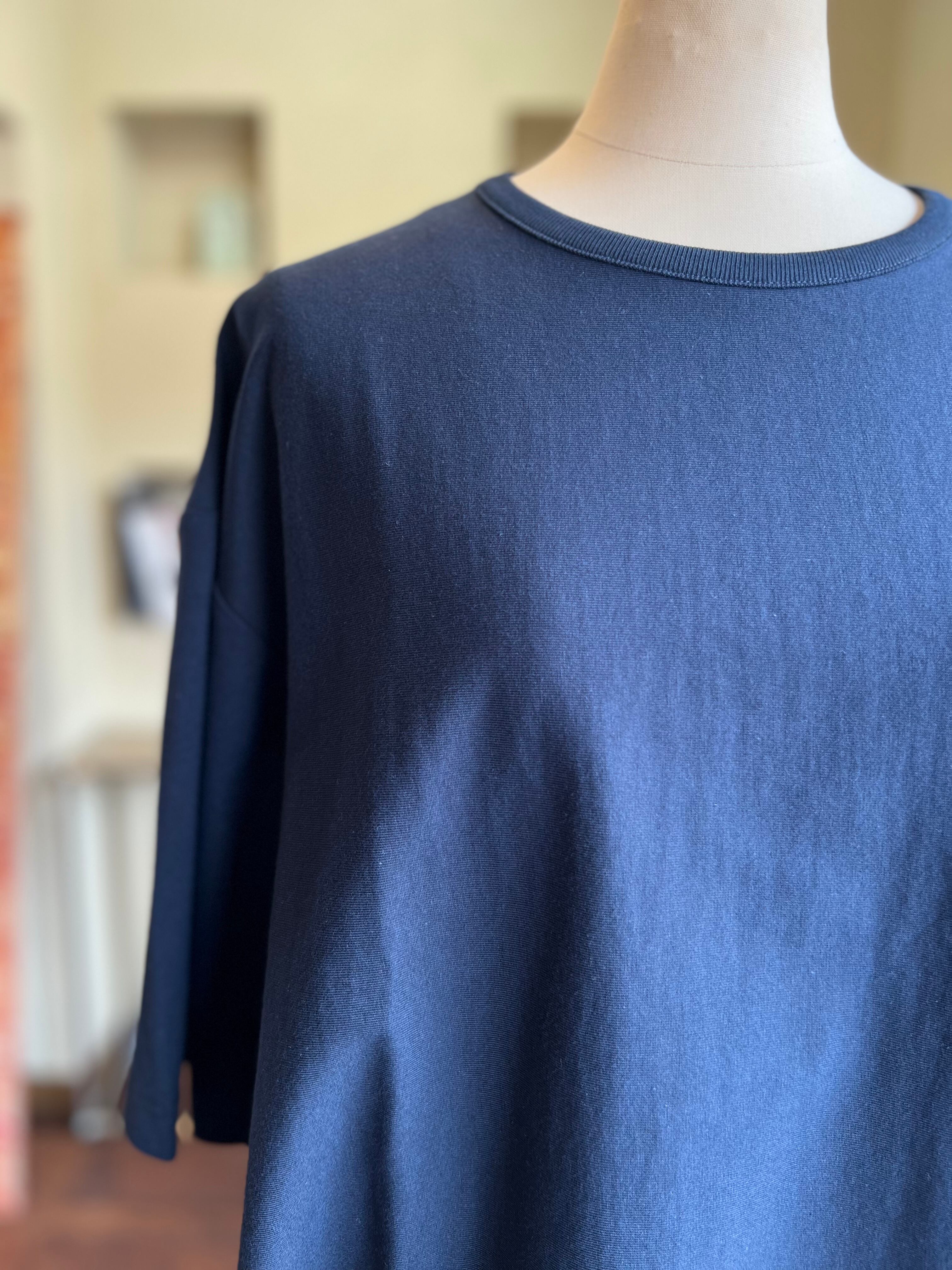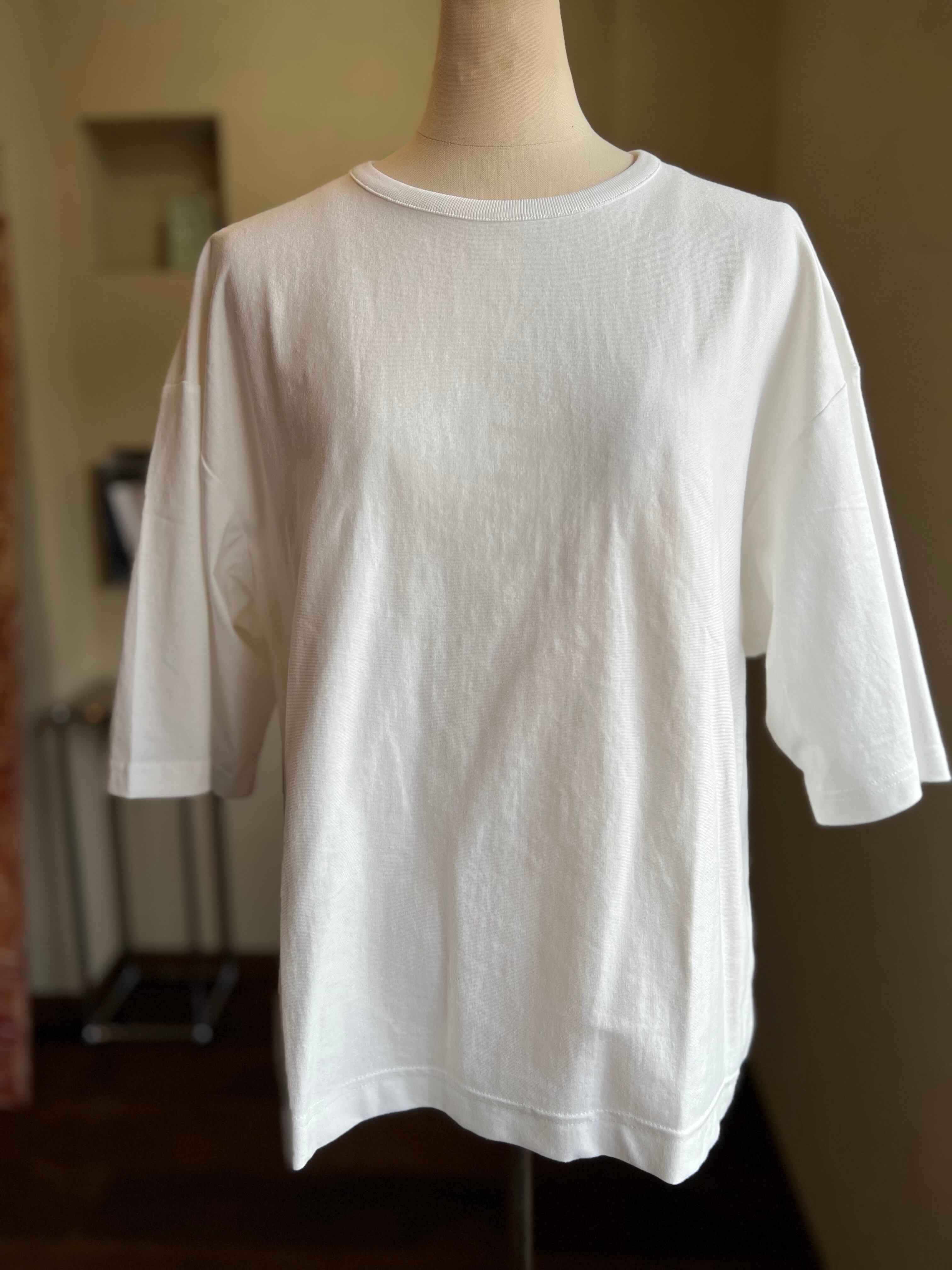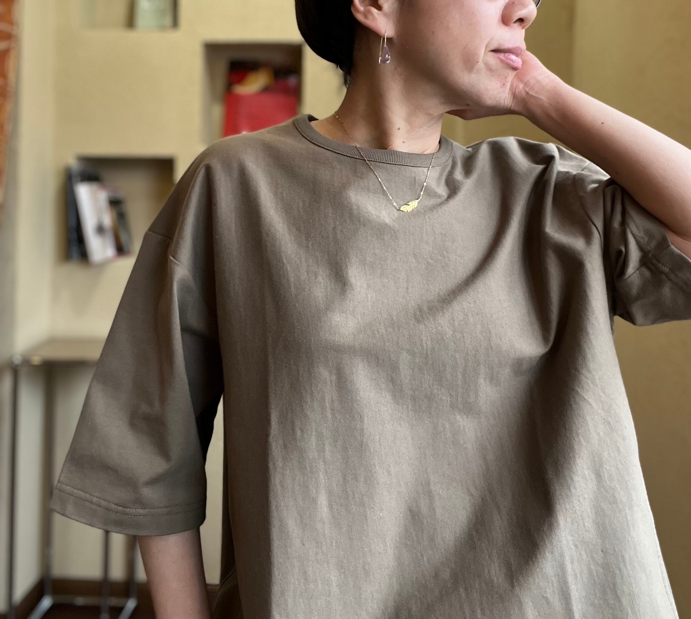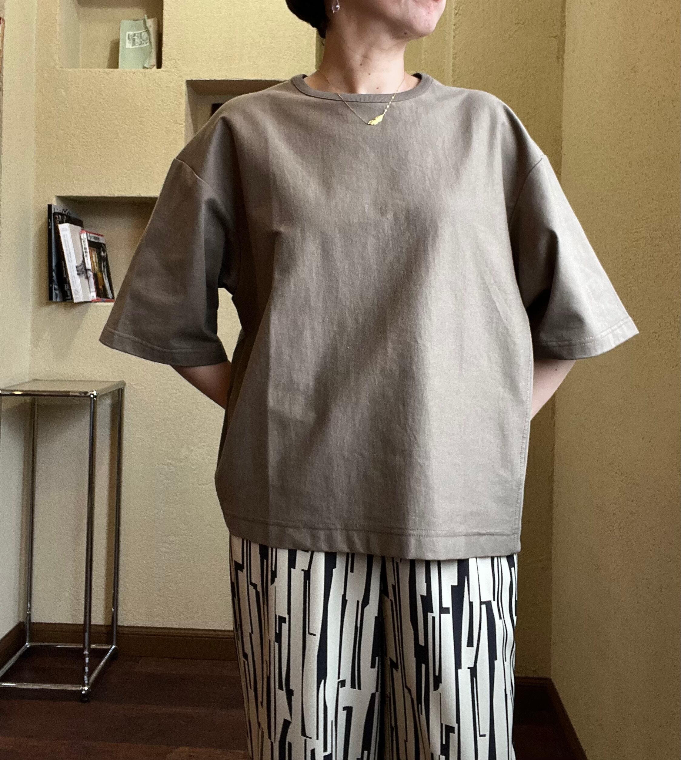 身体の線を拾いにくい厚手で光沢感と柔らかさを持った40/2の天竺を使用した