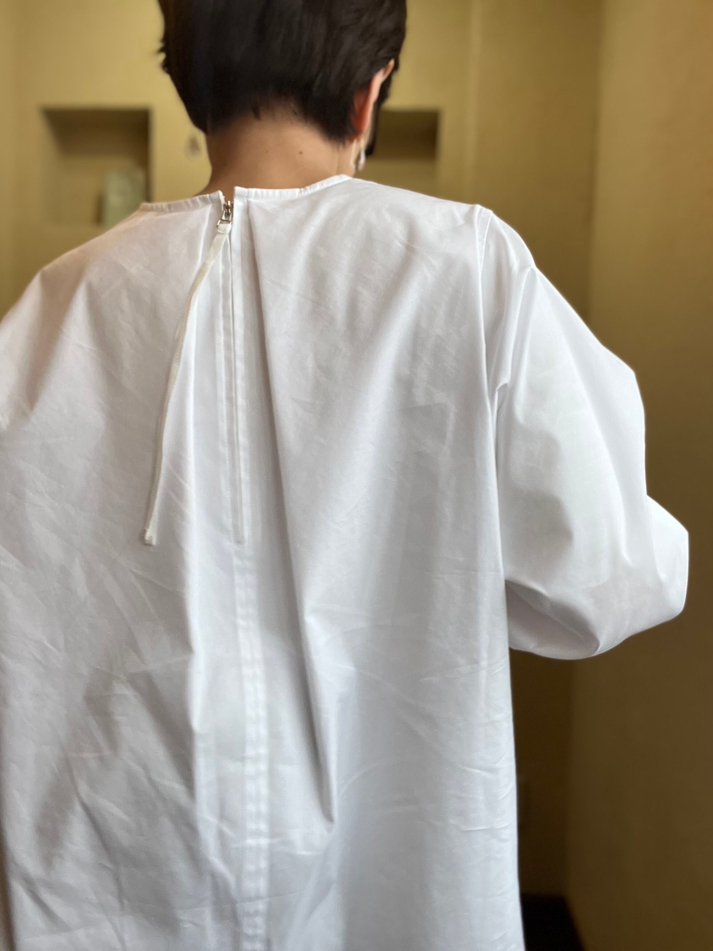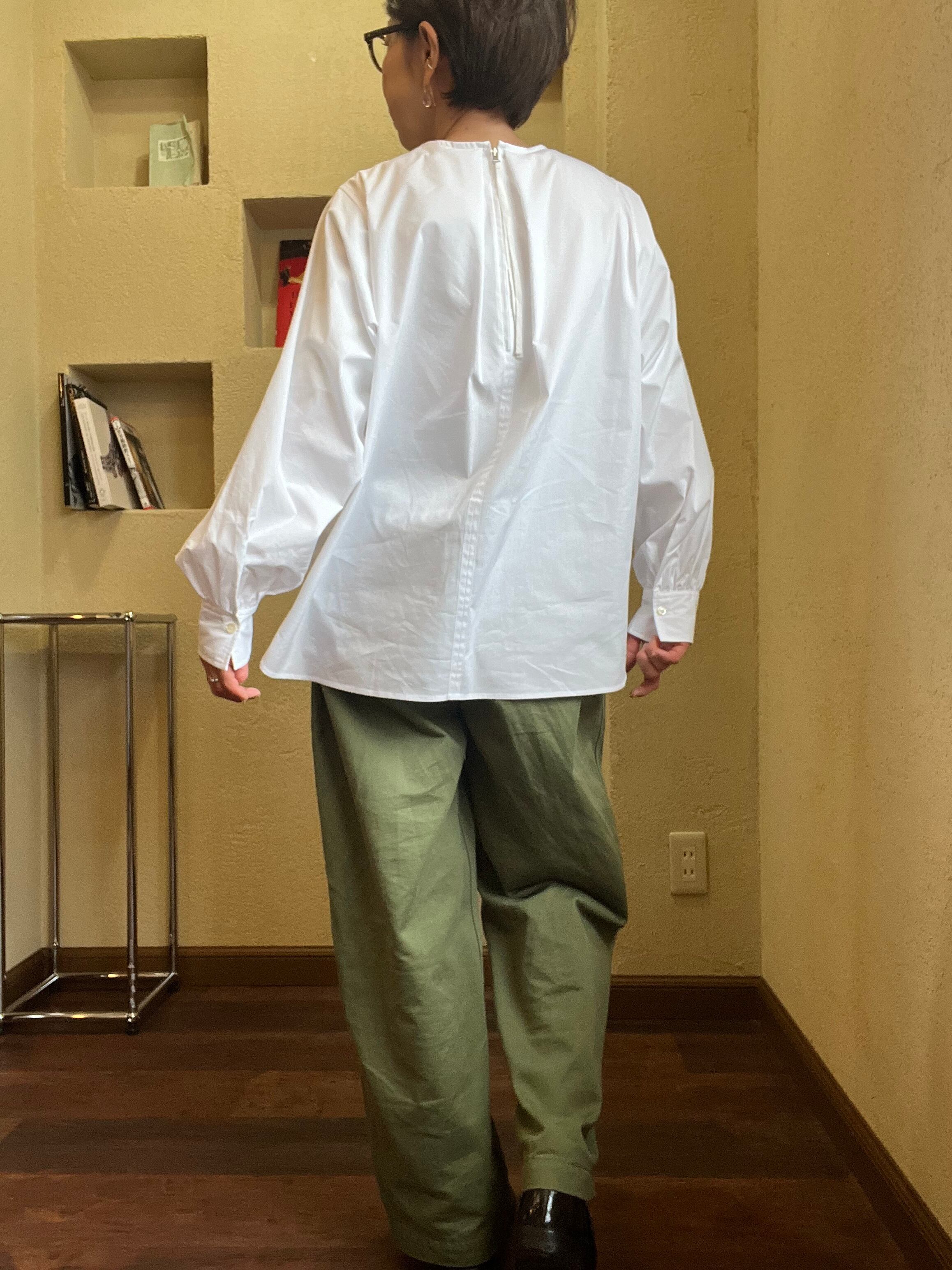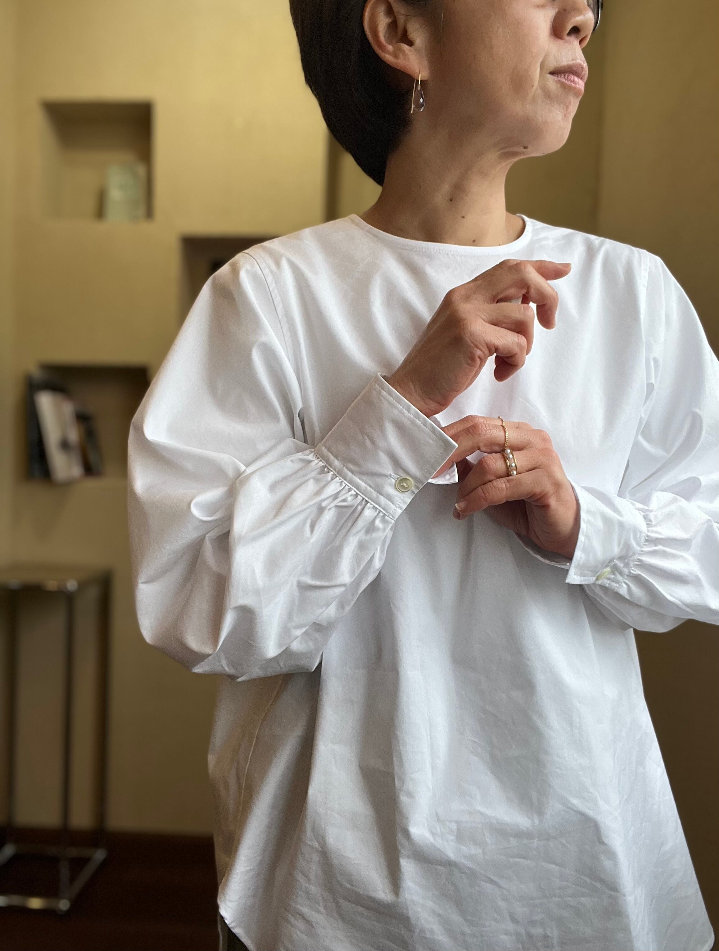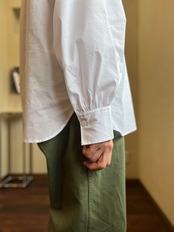ほどよい綿らしい質感もあり、ジレとのレイヤードもしやすいスリーブ&丈感です