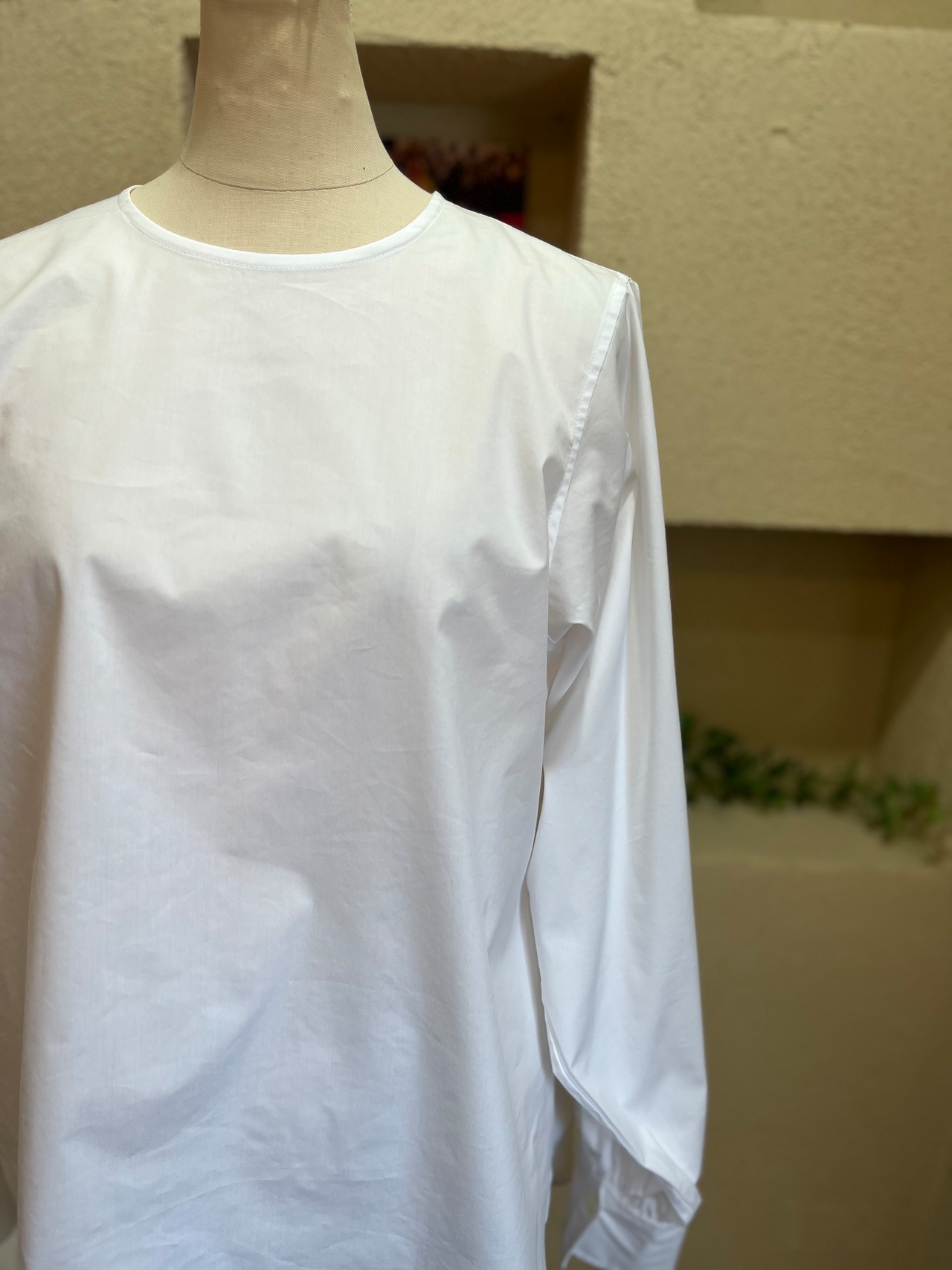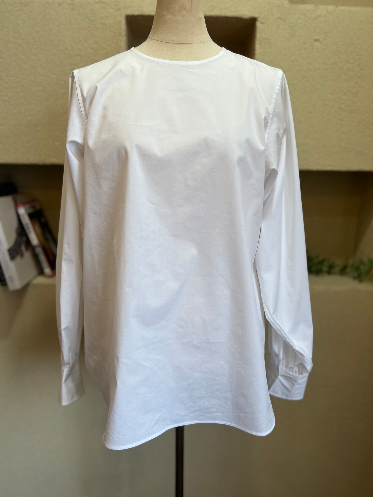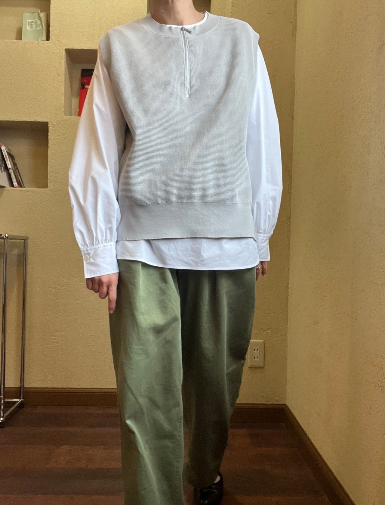 ほどよい綿らしい質感もあり、ジレとのレイヤードもしやすいスリーブ&丈感です