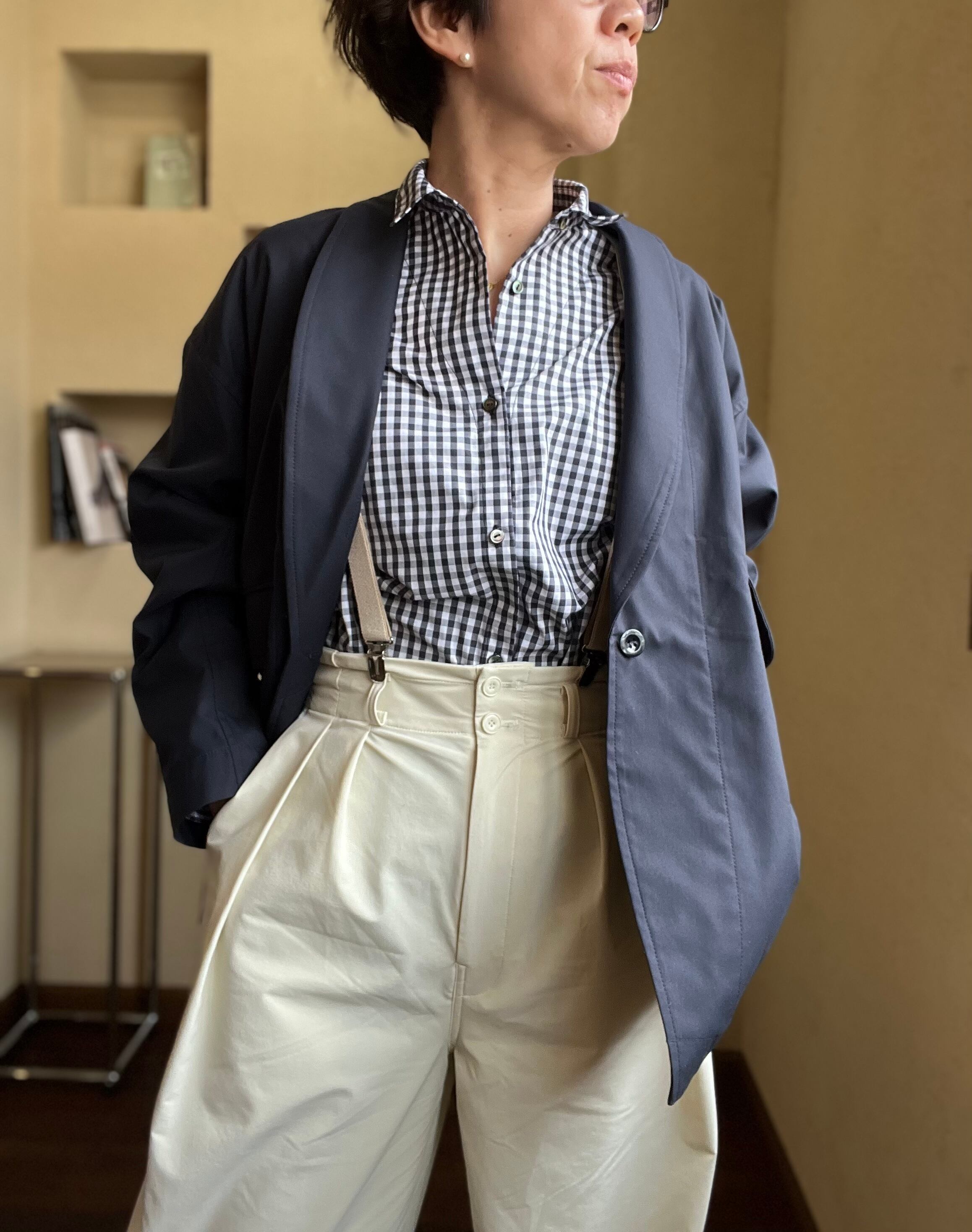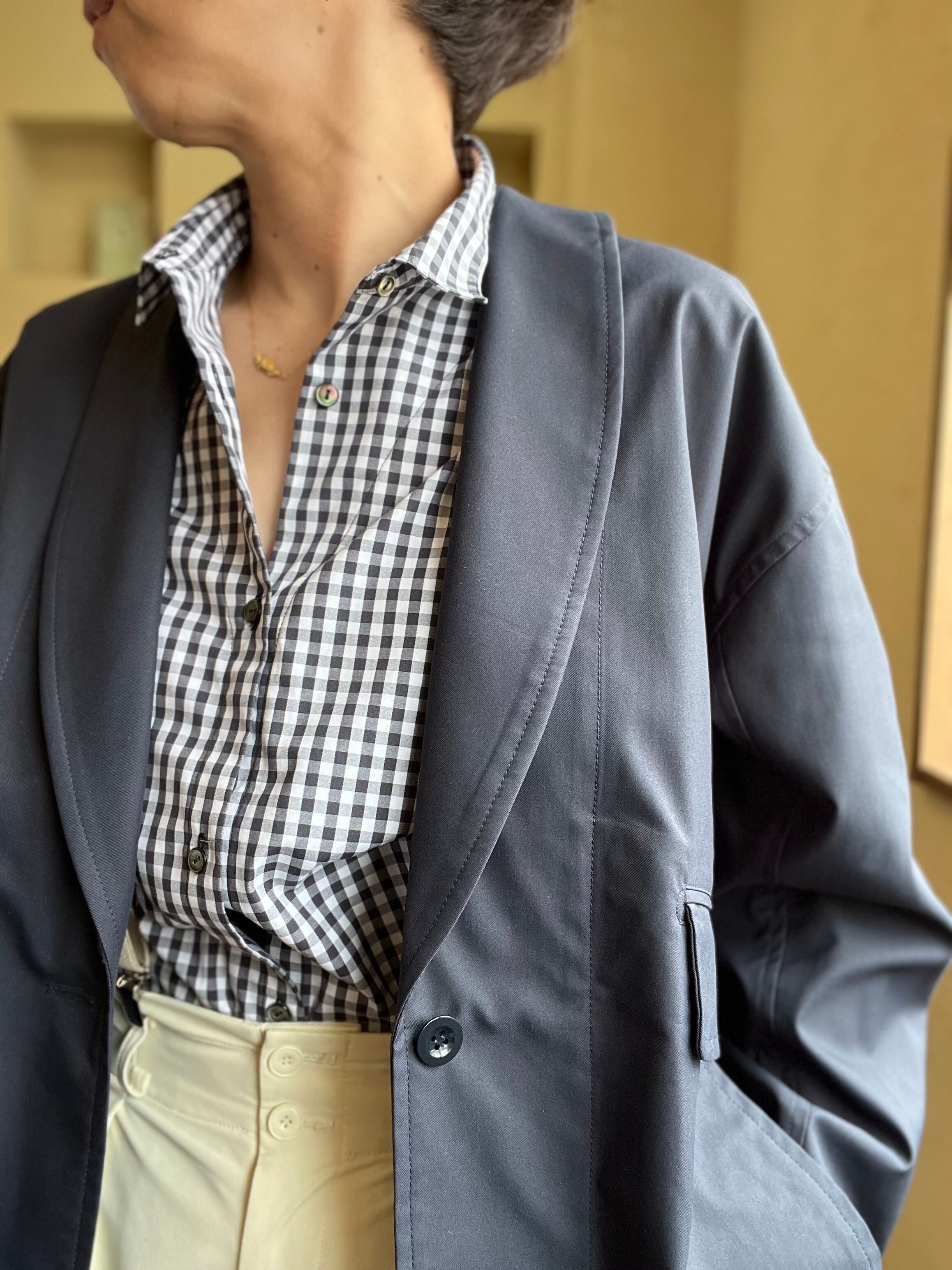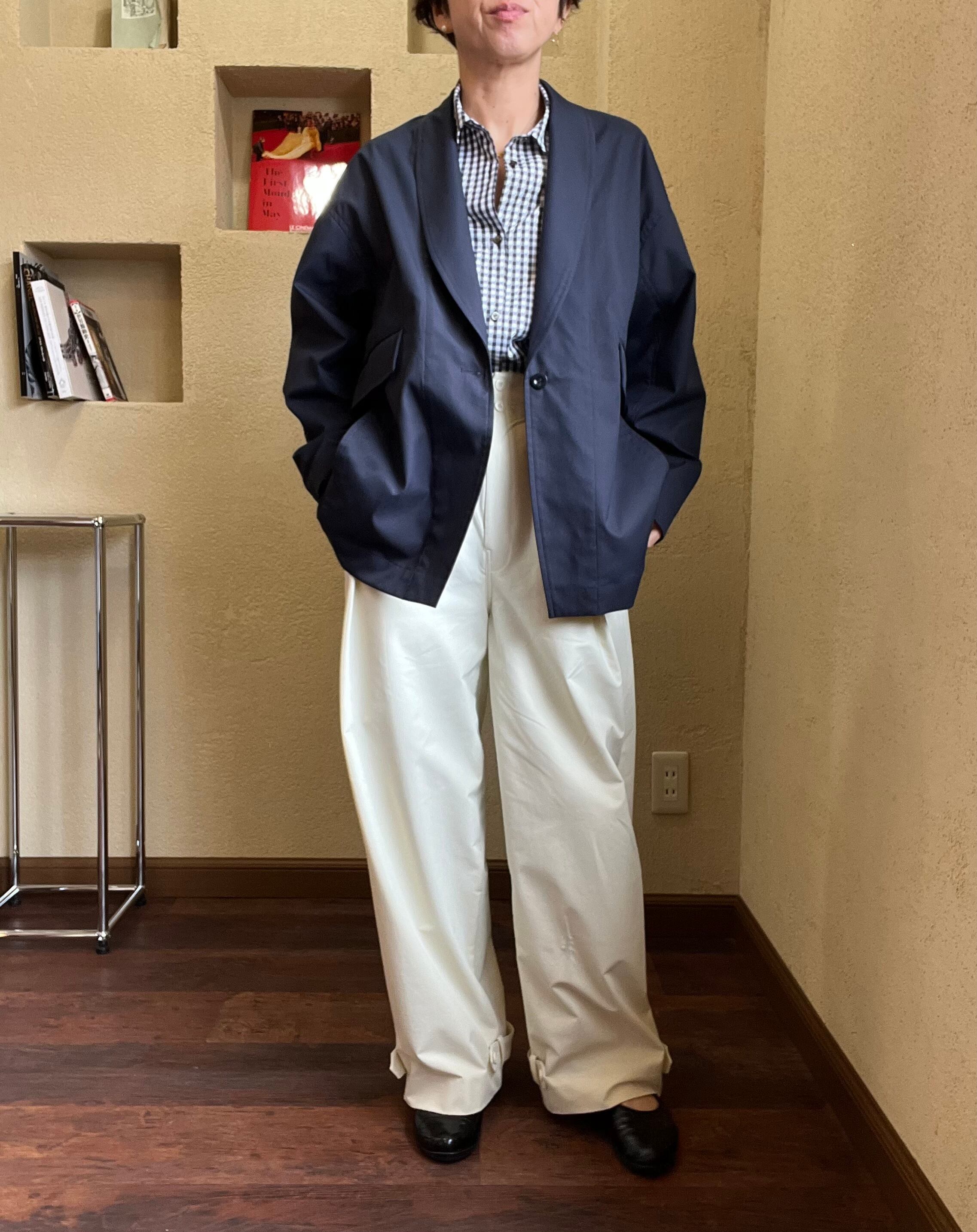 ビジネス対応もしやすいツイルを採用した汎用性の高いAラインジャケット